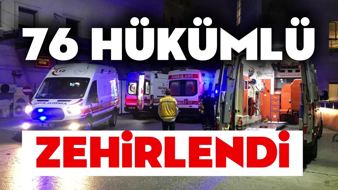 Sakarya'nın Ferizli ilçesinde bulunan Açık Ceza İnfaz Kurumu'nda 76 hükümlü yedikleri yemekten zehirlendi. Hastaneye sevk edilen 5 hükümlünün, işlemlerinin ardından taburcu edildiği diğer 71 hükümlünün ise ceza infaz kurumunun revirinde tedavi edildiği öğrenildi.