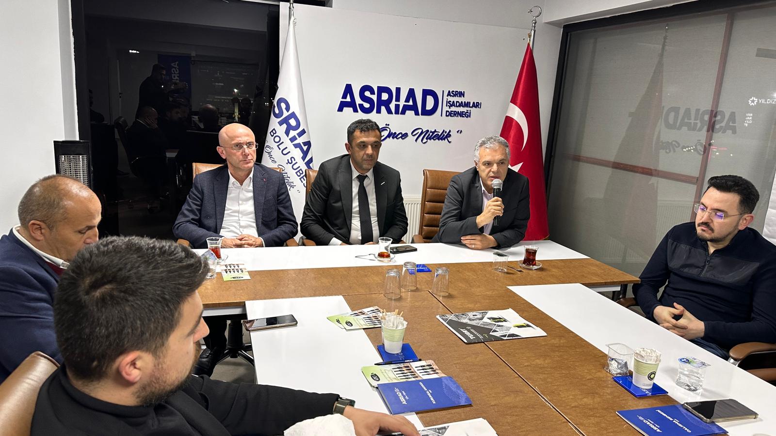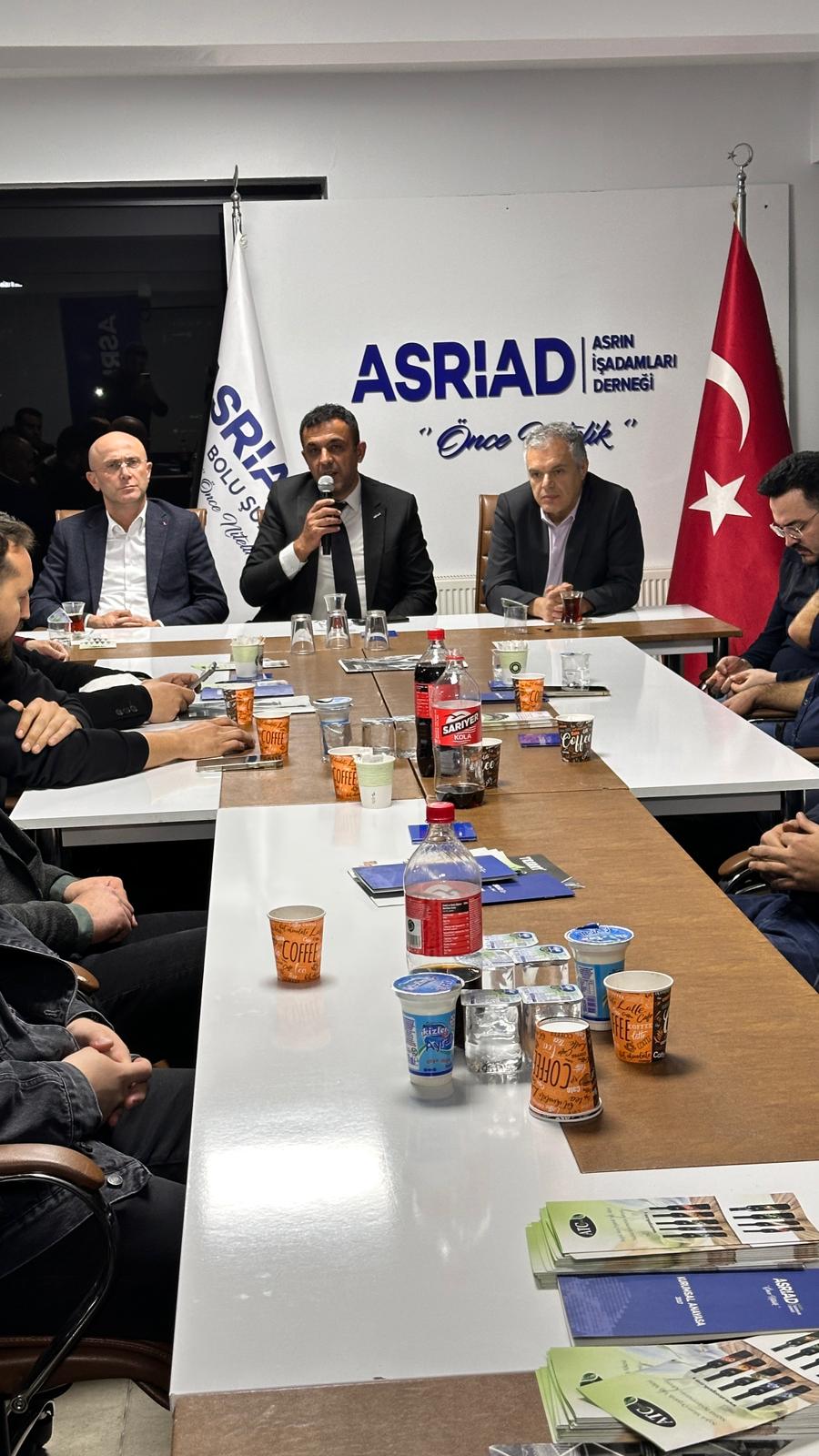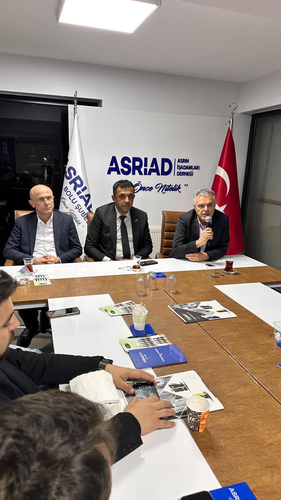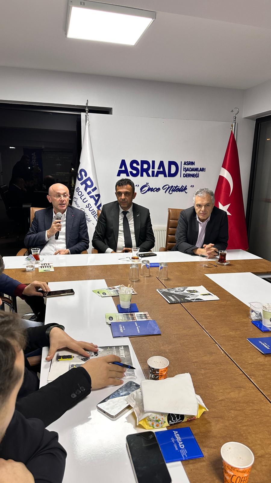 KOSGEB Bolu il müdürü Arif Ercan ve Sanayi Teknoloji İl müdürü Okan Şahin’in davetli olarak katıldığı toplantıya Asriad Bolu şube üyeleri ve Üye adayı misafirler yoğun ilgi gösterdi.