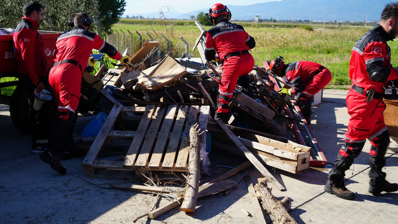 Balıkesir'deki 6.1'lik depremin ardından Koca Seyit Havalimanında ekipler kurtarma tatbikatı yaptı