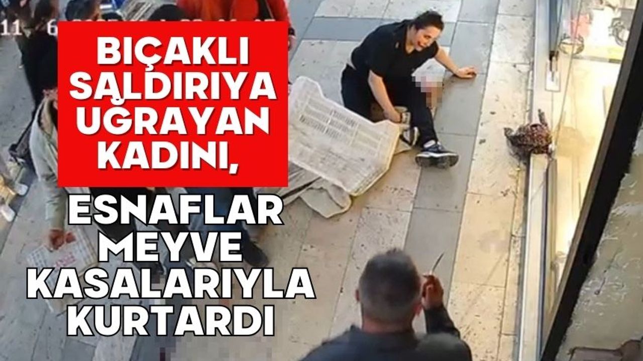 Bıçaklı saldırıya uğrayan kadını, esnaflar meyve kasalarıyla kurtardı