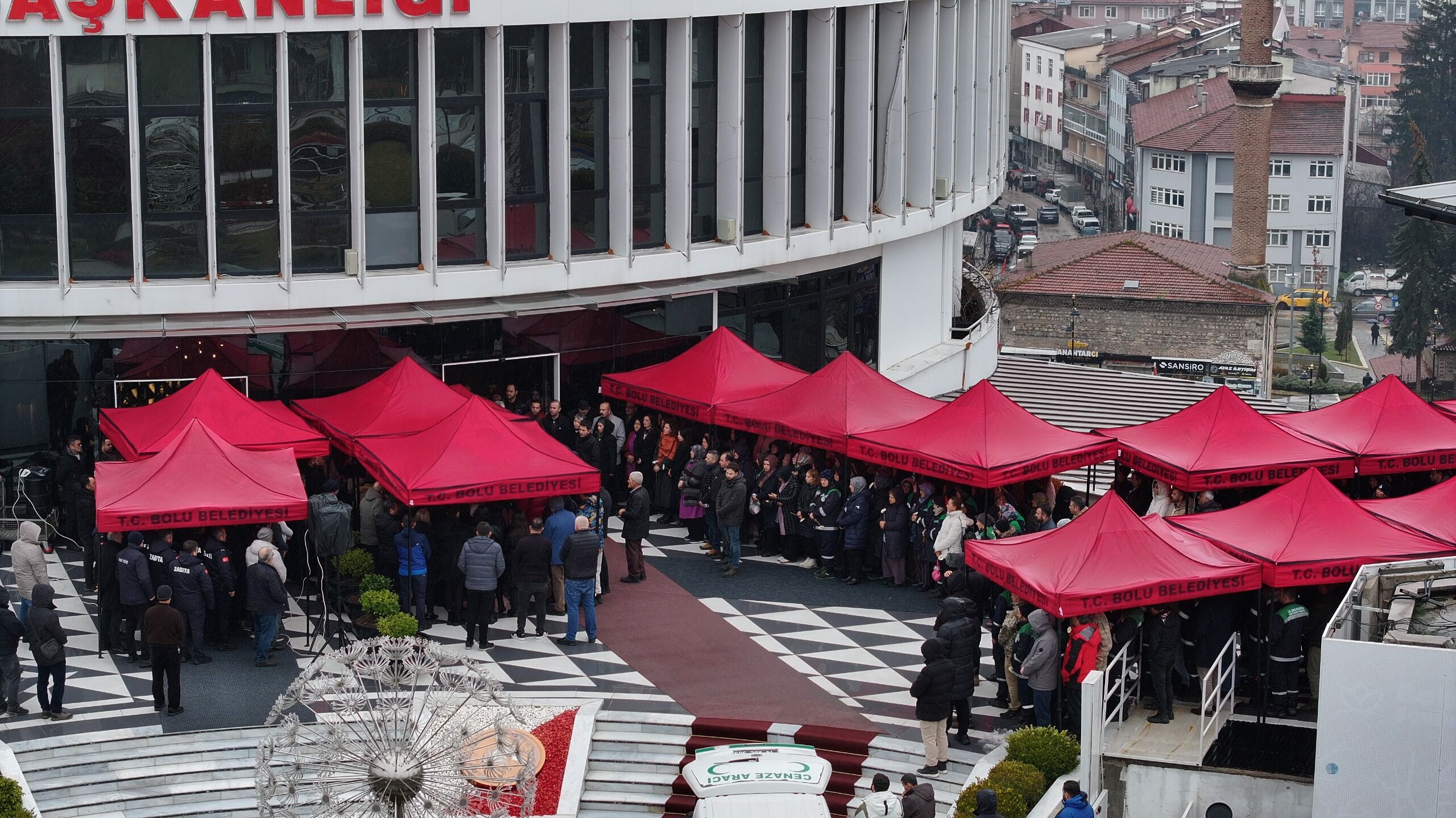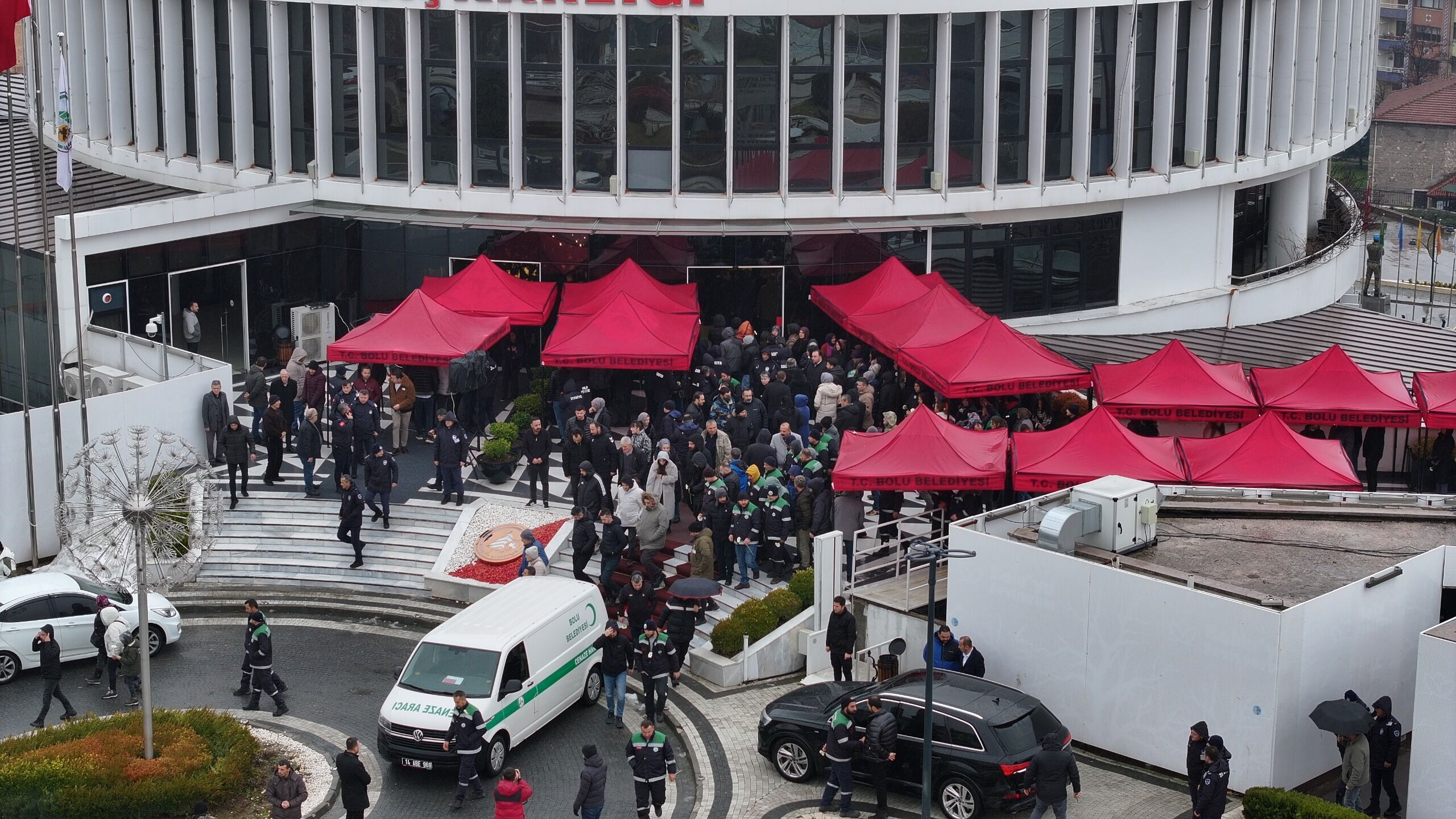 Elim bir kaza sonucu genç yaşta yaşamını yitiren Tahsin Çiftçi’nin naaşı, bu sabah son kez görev yaptığı Bolu Belediyesi binasına getirildi. Protokol girişi önünde düzenlenen törende mesai arkadaşlarından helallik alındı. Törene Çiftçi’nin annesi, babası, eşi ve yakınlarının yanı sıra Bolu Belediye Başkanı Tanju Özcan, belediye başkan yardımcıları, birim müdürleri ve çok sayıda belediye personeli katıldı.