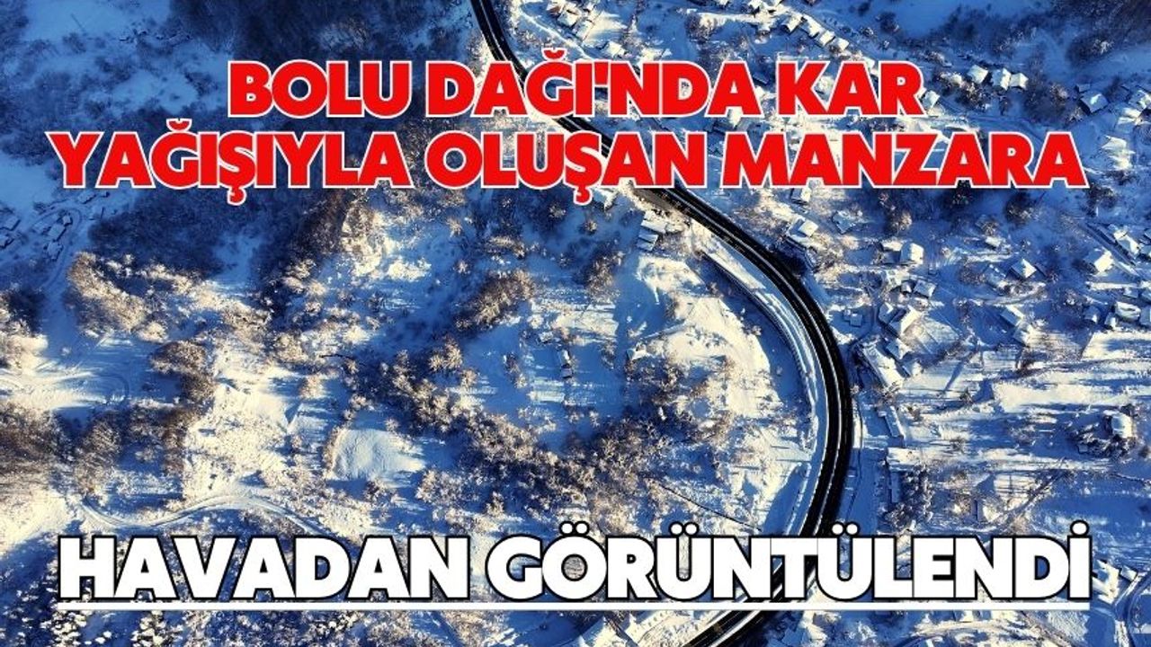 Bolu Dağı geçişinde karla kaplanan ağaçlar havadan da görüntülendi.