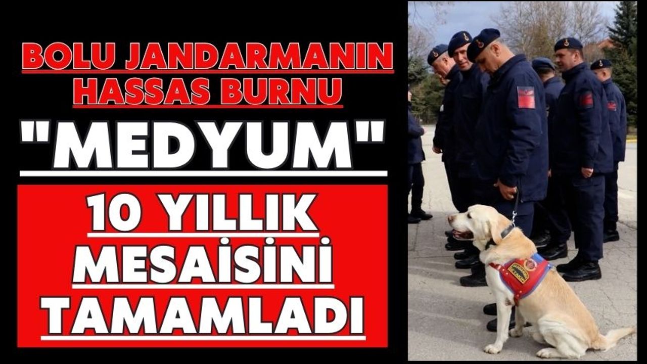 İl Jandarma Komutanlığında asayiş olaylarının aydınlatılmasından arama kurtarma faaliyetlerine, iz takibinden operasyonel görevlere kadar pek çok kritik alanda jandarma ekiplerine destek veren Medyum, görev süresi ve yaş haddini doldurmasıyla emekli oldu. Medyum için İl Jandarma Komutanlığında tören düzenlendi. Jandarma personeli, yıllarca birlikte mesai yaptıkları sadık dostlarına hizmetlerinden dolayı sembolik madalya taktı.