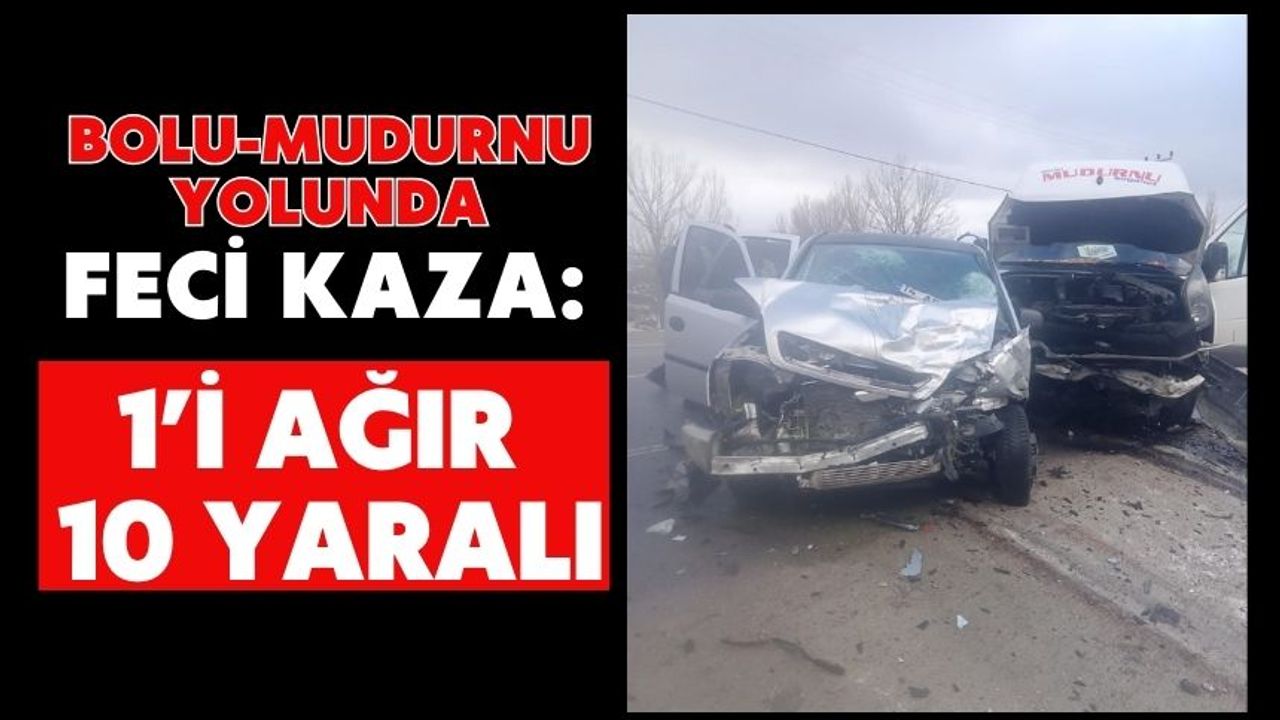 Bolu-Mudurnu kara yolunda otomobil ile minibüsün çarpışması neticesinde meydana gelen kazada 1’i ağır 10 kişi yaralandı.