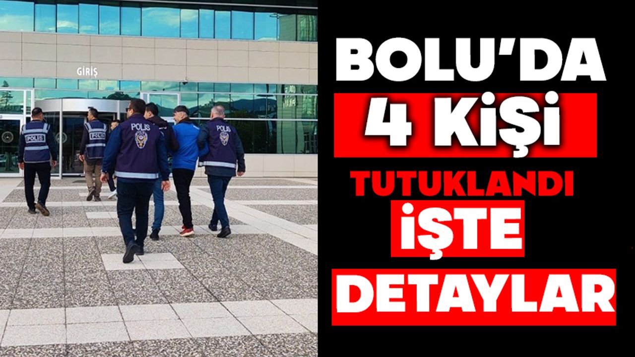 Bolu İl Emniyet Müdürlüğü Asayiş Şube Müdürlüğü ekipleri tarafından kent genelinde yapılan çalışmalarda, çeşitli suçlardan aranması bulunan şahıslar tespit edilerek operasyon düzenlendi. Yapılan çalışmalarda, sarkıntılık yapmak suretiyle çocuğun cinsel istismarı suçundan 3 yıl 4 ay hapis cezası bulunan 1 kişi, görevi yaptırmamak için direnme suçundan 2 yıl 9 ay 22 gün hapis cezası bulunan 2 kişi ve ruhsatsız ateşli silahlarla mermileri satın alma veya taşıma veya bulundurma suçundan 10 ay hapis cezası bulunan 1 kişi olmak üzere toplam 4 kişi yakalandı. Emniyetteki işlemleri tamamlanan şahıslar, çıkarıldıkları adli makamlarca tutuklanarak Ceza İnfaz Kurumuna teslim edildi.