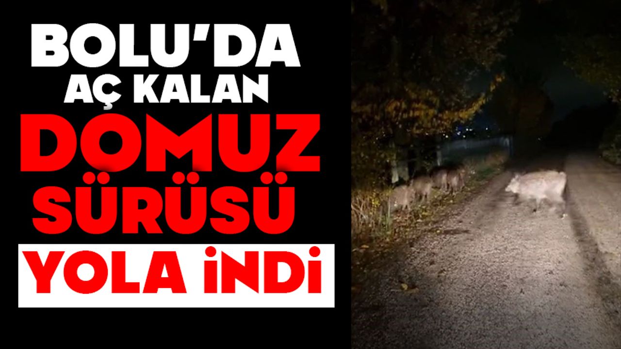 Bolu’da merkeze bağlı Bakırlı köyü mevkiinde aç kalan domuz sürüsü kara yolu üzerine indi. Domuzlar etrafta yiyecek ararken o anlar, yoldan geçen bir vatandaş tarafından cep telefonu kamerasıyla görüntülendi. Bir süre etrafta yiyecek arayan domuzlar, daha sonra ormanlık alana girerek bölgeden uzaklaştı.