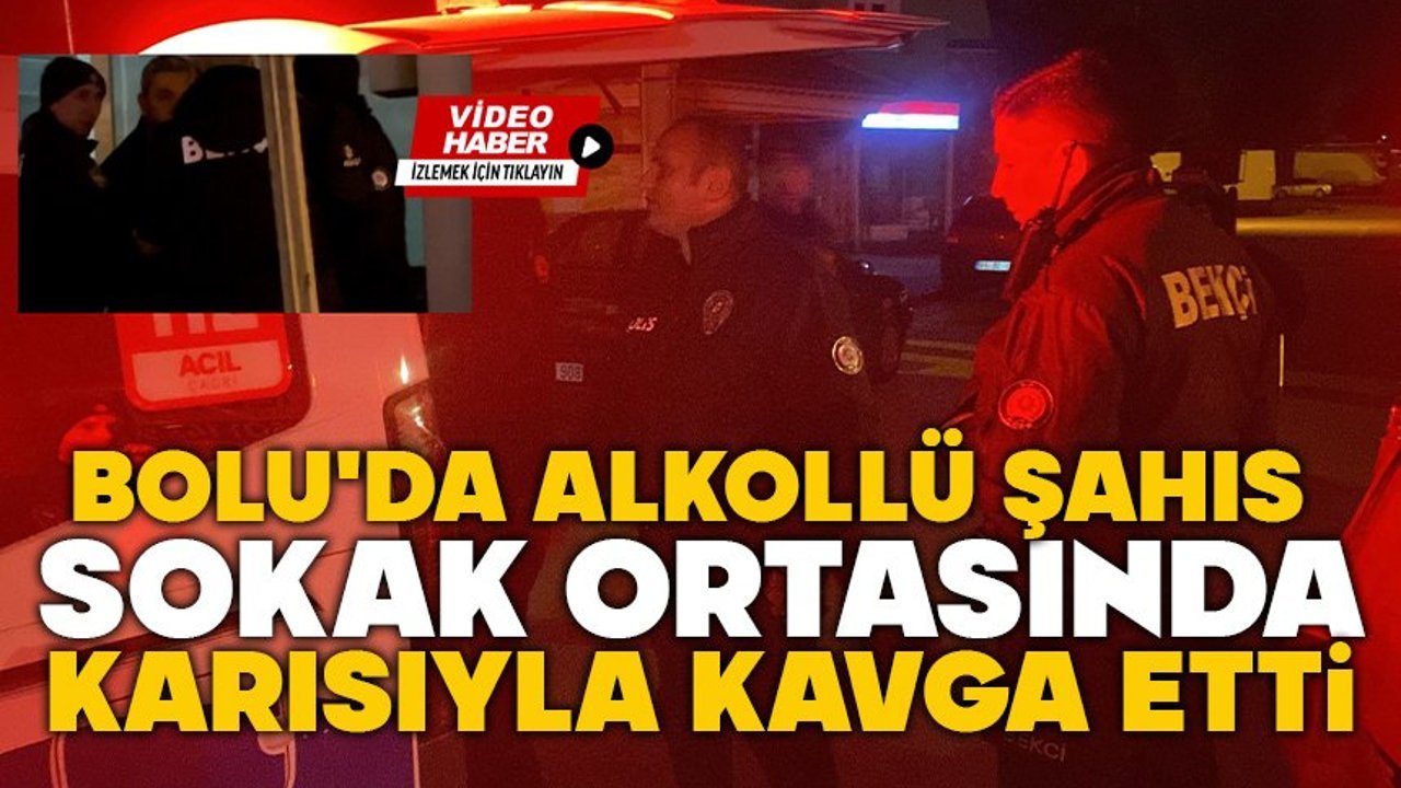 Bolu'da sokak ortasında karısıyla kavga eden ve alkollü olduğu iddia edilen şahıs polis ekipleri tarafından gözaltına alındı.