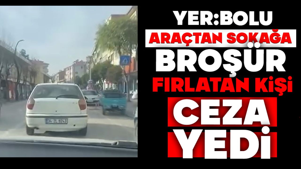 Bolu’da çevre kirliliğine geçit verilmiyor. Bolu Belediyesi Zabıta Müdürlüğü ekipleri, yerel basında yer alan görüntülerde İsmet Paşa Caddesi üzerinde seyreden 34 ZL 9243 plakalı beyaz otomobilin içinden reklam broşürü fırlatıldığının görülmesi üzerine harekete geçti. Görüntülerden aracın plakasını tespit eden ekipler, ilgili kişi hakkında broşürleri yere atmak suretiyle çevreyi kirletme gerekçesiyle idari para cezası kesti.