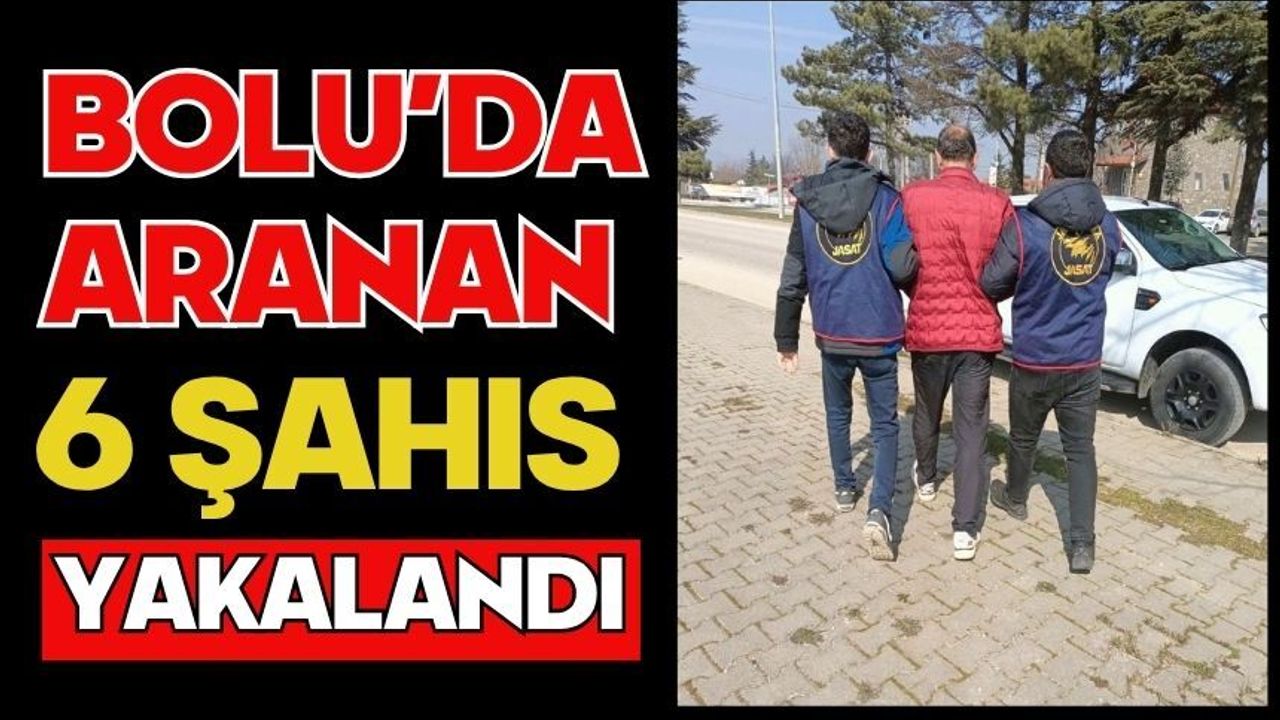 Bolu İl Jandarma Komutanlığı ekiplerince aranan şahısların yakalanmasına yönelik yürütülen çalışmalar kapsamında, farklı suçlardan kesinleşmiş hapis cezaları bulunan 6 kişi yakalandı. Bolu İl Jandarma Komutanlığı Asayiş Şube Müdürlüğü ekipleri ile JASAT (Jandarma Dedektifleri) tarafından gerçekleştirilen operasyonlarda; “Cebir, tehdit veya hile ile kişiyi hürriyetinden yoksun kılma” suçundan hakkında 7 yıl 6 ay kesinleşmiş hapis cezası bulunan S.K., “Kamu hizmetine tahsis edilen eşya hakkında hırsızlık” suçundan 5 yıl 7 ay 15 gün hapis cezası bulunan A.Ö., “Bina içinde muhafaza altına alınmış eşya hakkında hırsızlık ve işyeri dokunulmazlığının ihlali” suçlarından 5 yıl 6 ay hapis cezası bulunan L.G.,“Bina içinde muhafaza altına alınmış eşya hakkında hırsızlık” suçundan 5 yıl 2 ay 15 gün hapis cezası bulunan A.S., “Vergi Usul Kanunu’na muhalefet” suçundan 3 yıl 7 ay 22 gün hapis cezası bulunan M.S.B., “Kasten yaralama” suçundan 3 yıl 1 ay 15 gün hapis cezası bulunan K.C. yakalandı.