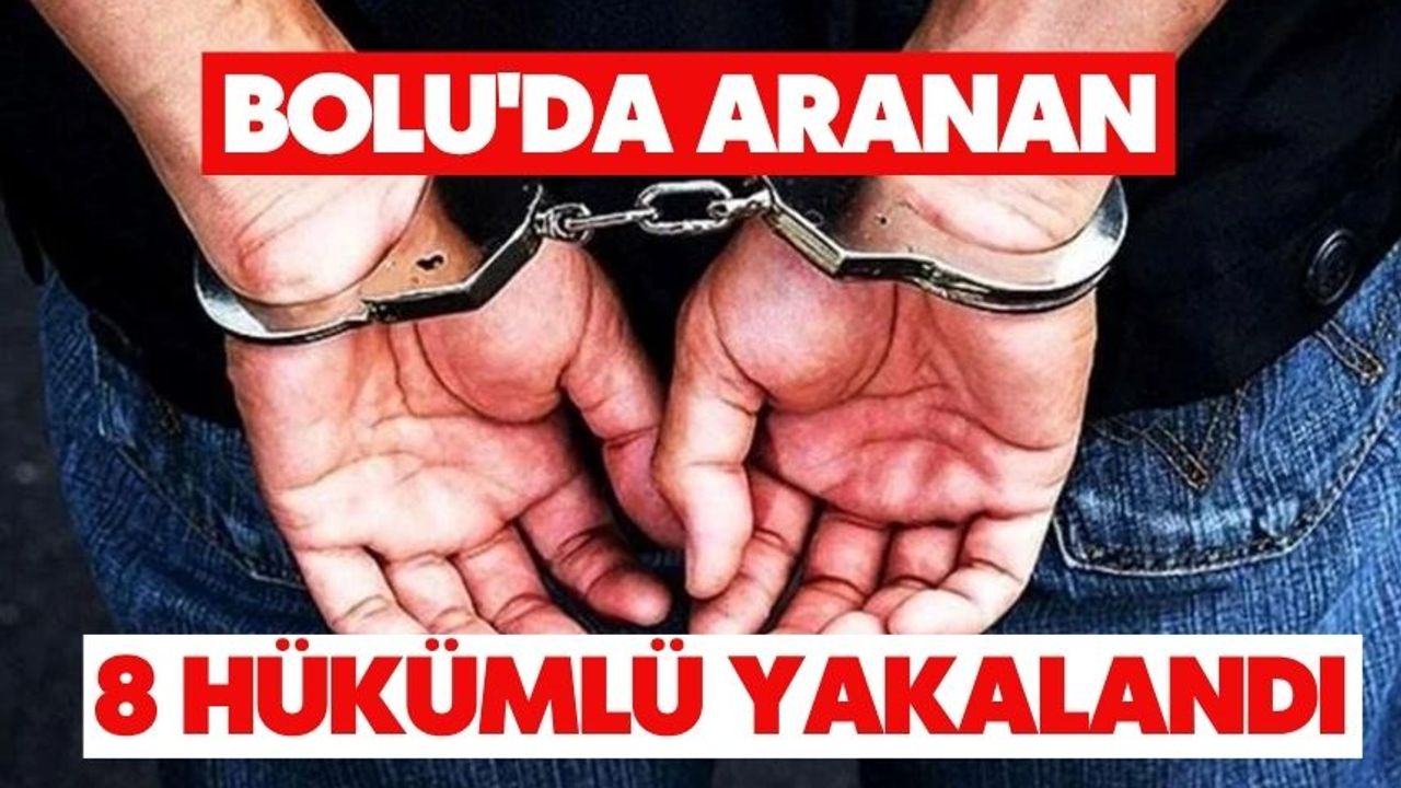 Edinilen bilgiye göre, Bolu İl Jandarma Komutanlığına bağlı Jandarma Suç Araştırma Timi (JASAT) ve asayiş timleri, aranan şahısların yakalanmasına yönelik çalışma yürüttü. Ekiplerce düzenlenen operasyonlarda, "bina içinde muhafaza altına alınmış eşya hakkında hırsızlık", "kullanmak için uyuşturucu veya uyarıcı madde satın almak", "başkasına ait banka veya kredi kartının izinsiz kullanılması suretiyle yarar sağlama" ve "trafik güvenliğini tehlikeye sokma" gibi suçlardan aranan 8 hükümlü yakalandı.