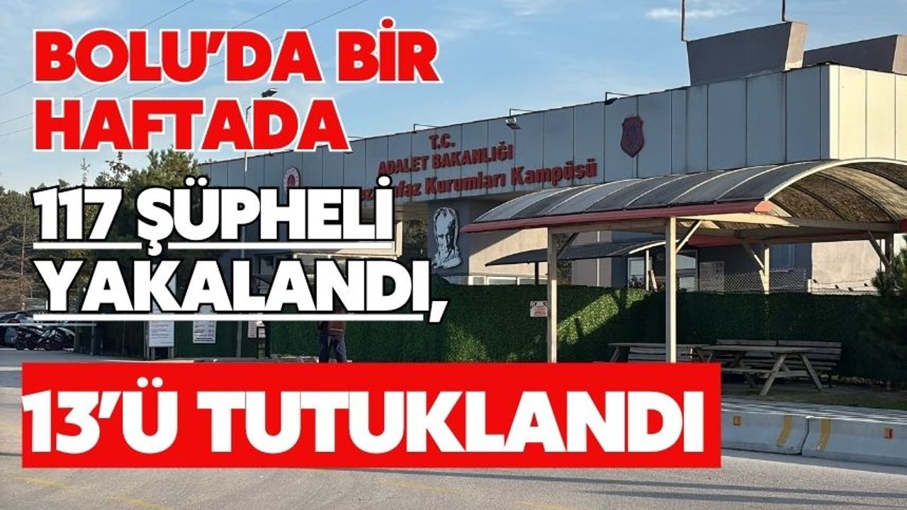 Bolu’da emniyet ve jandarma ekiplerince bir hafta içerisinde çeşitli suç kaydı bulunan 117 şüpheli yakalanırken bu kişilerden 13’ü tutuklanarak cezaevine gönderildi.