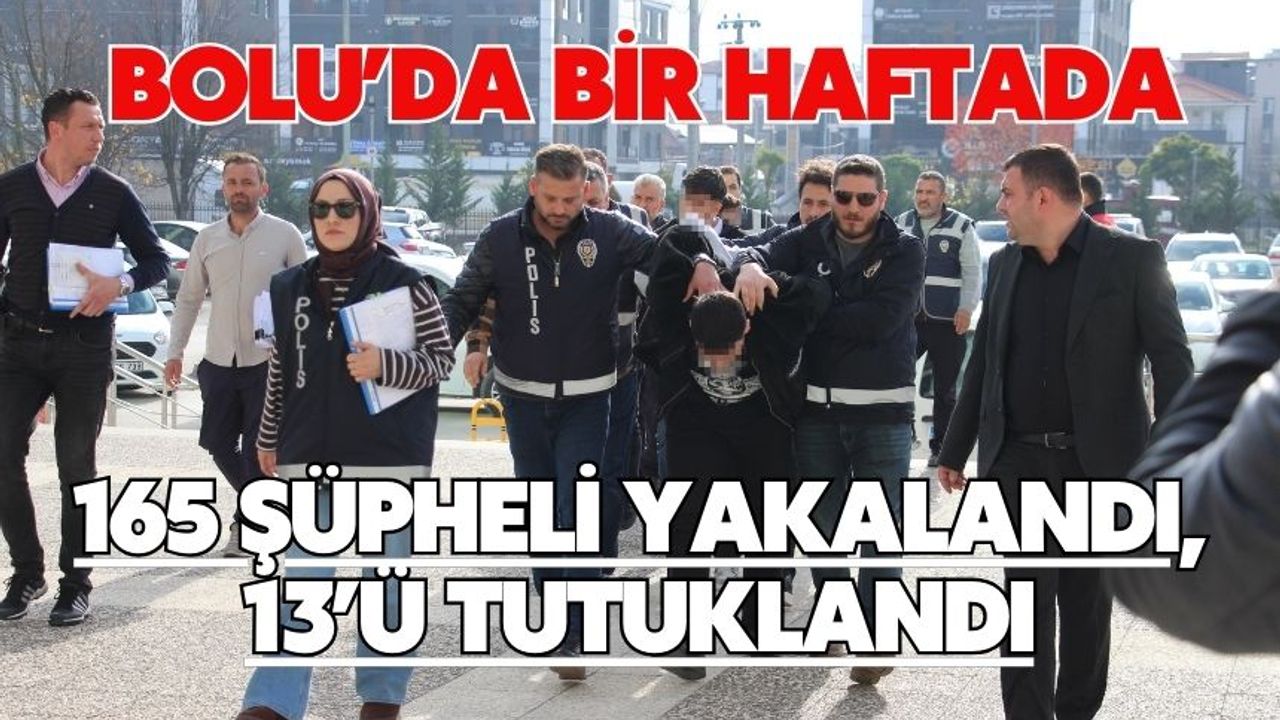 Bolu’da emniyet ve jandarma ekiplerince bir hafta içerisinde çeşitli suç kaydı bulunan 165 şüpheli yakalanırken bu kişilerden 13’ü tutuklanarak cezaevine gönderildi.