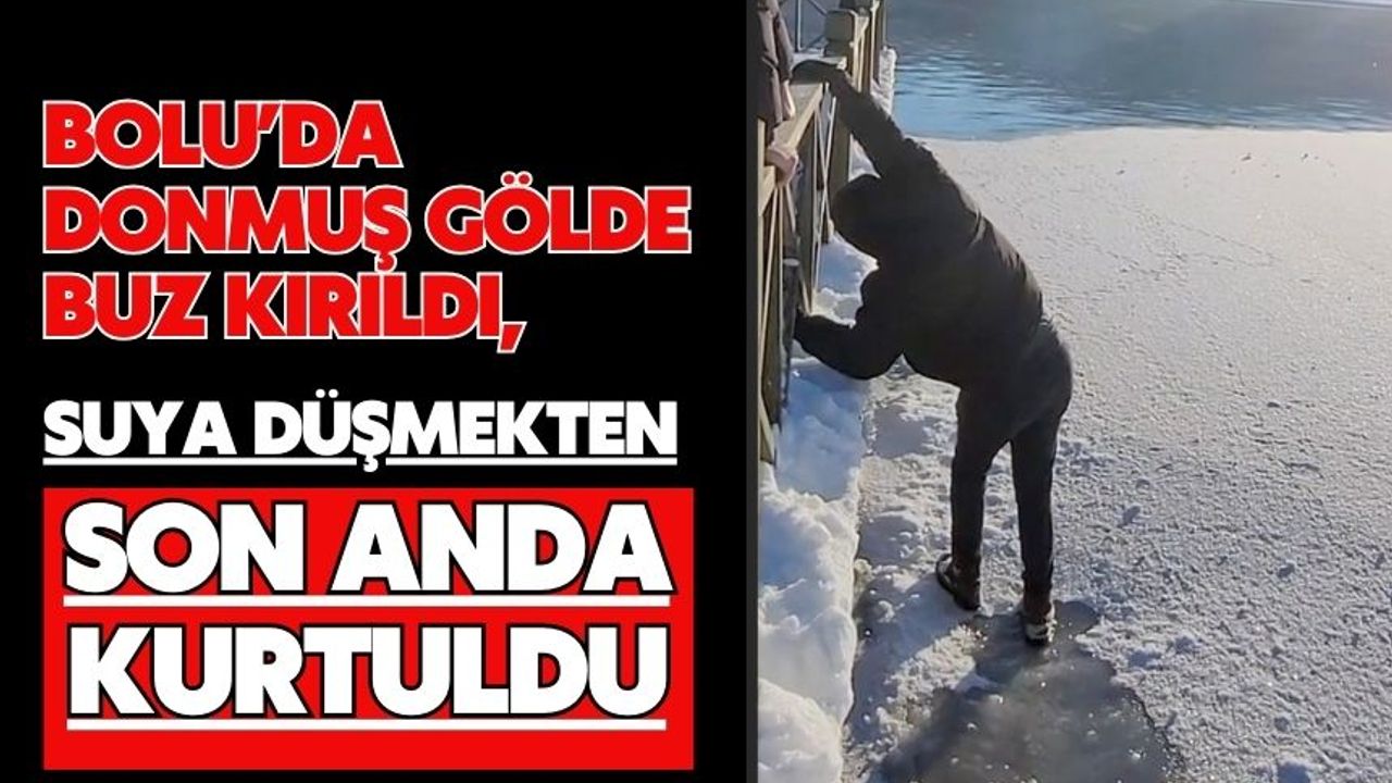 Abant Gölü Milli Parkı’na tatil için gelen ismi öğrenilemeyen bir genç, tüm uyarılara ve tabelalara aldırış etmeden donmuş göl yüzeyine çıkmak istedi. Göl kenarındaki ahşap çitlerin diğer tarafına geçen genç, korkuluklara tutunarak donmuş yüzeyde yürümeye başladı. Çevredeki vatandaşların bakışları arasında tehlikeli yürüyüşünü sürdüren genç, bir anda buzun kırılmasıyla neye uğradığını şaşırdı. Bastığı buz tabakasının aniden kırılmasıyla suya düşme tehlikesi geçiren genç, elleriyle tutunduğu çitler sayesinde buzlu suya düşmekten son anda kurtuldu. O anlar vatandaş kamerasına yansıdı.