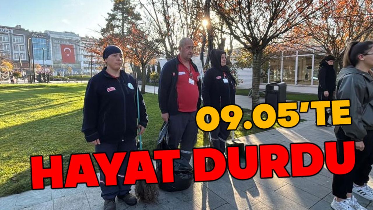 Düzce'de ise Vali Selçuk Aslan ve Belediye Başkan Vekili Hasan Günden Anıtpark Meydanı'nda çelenk bıraktı. Kent merkezlerindeki işlek noktalarda bulunan vatandaşlar, siren sesiyle birlikte tüm işlerini bırakarak saygı duruşuna geçti.