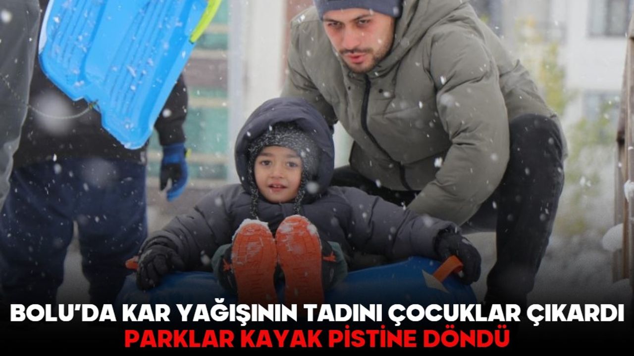 Bolu’da kar yağışının tadını çocuklar çıkardı: Parklar kayak pistine döndü