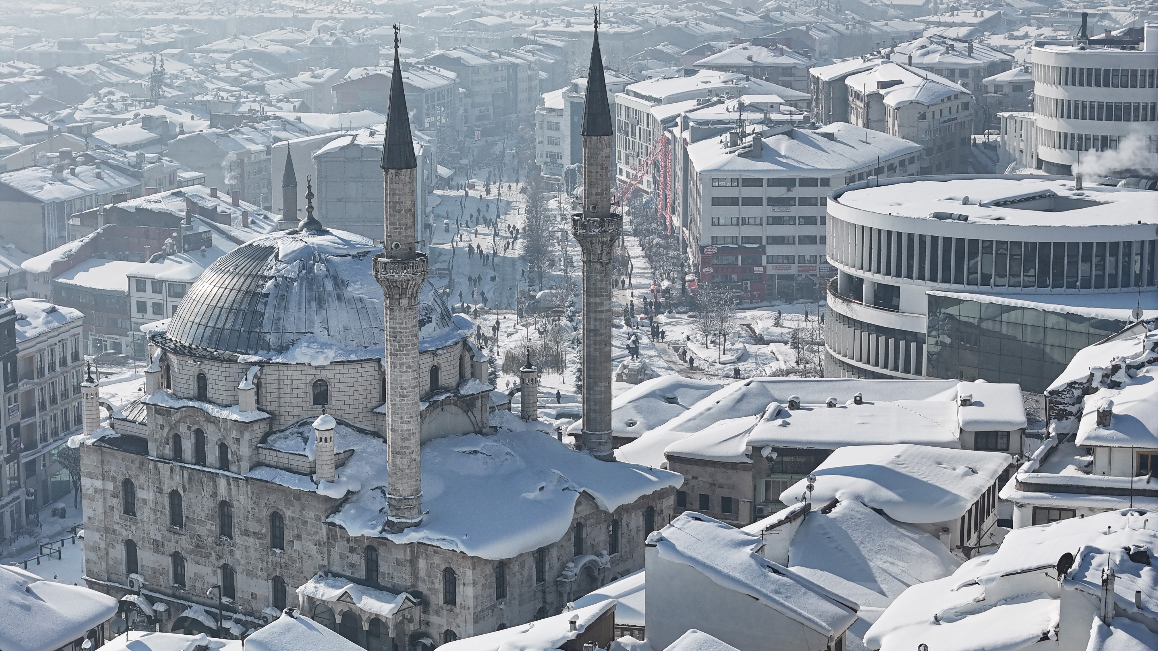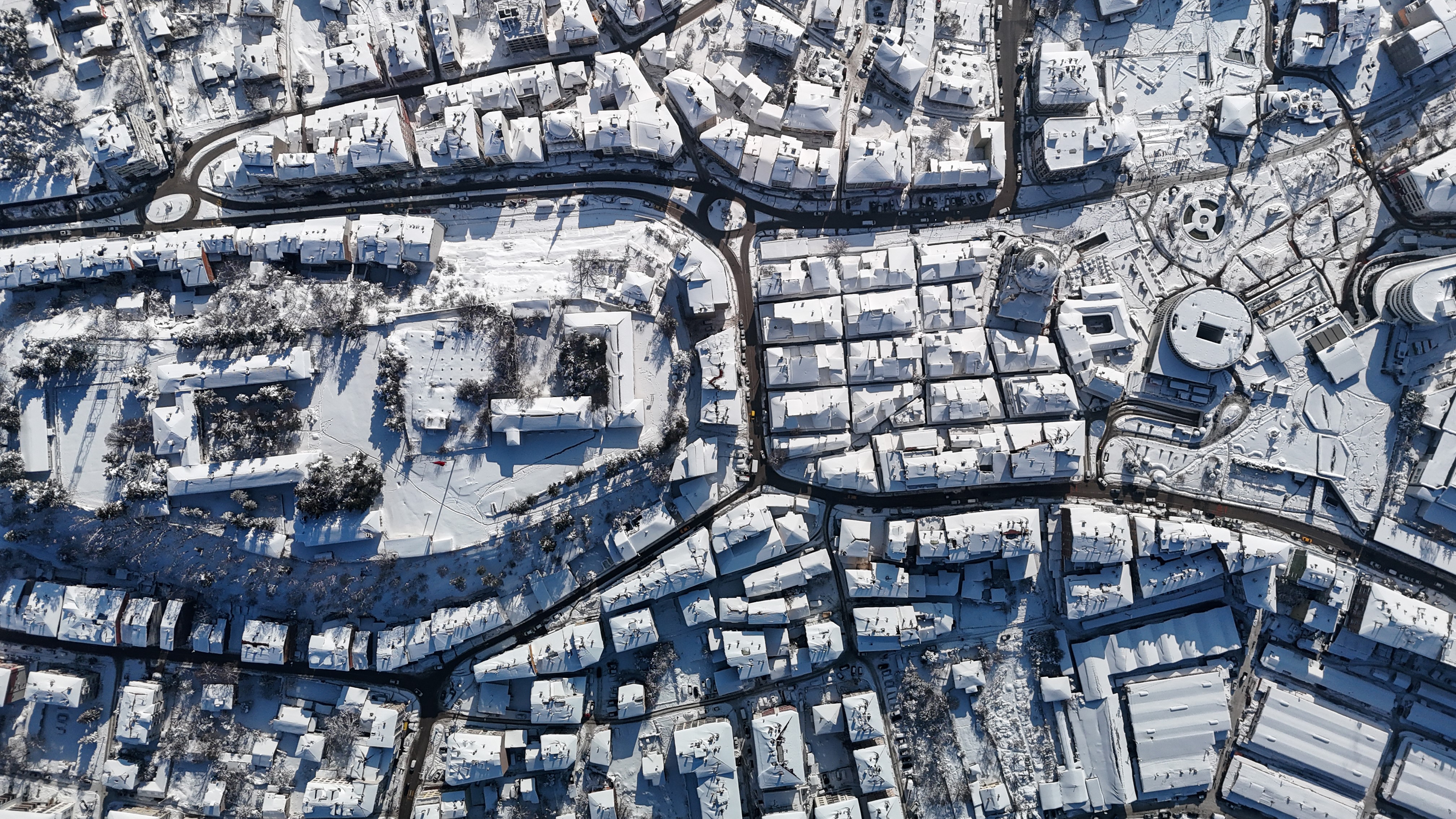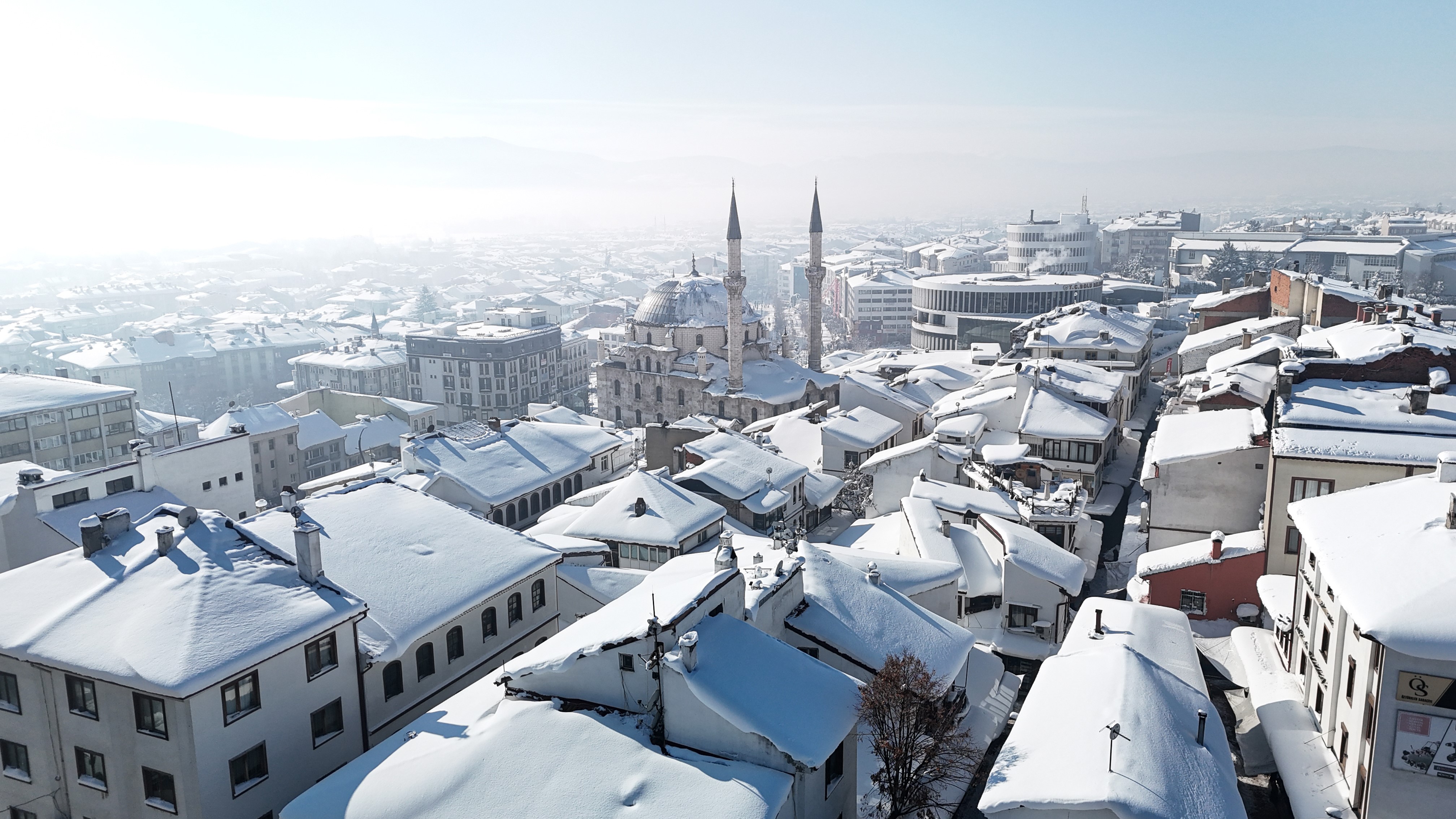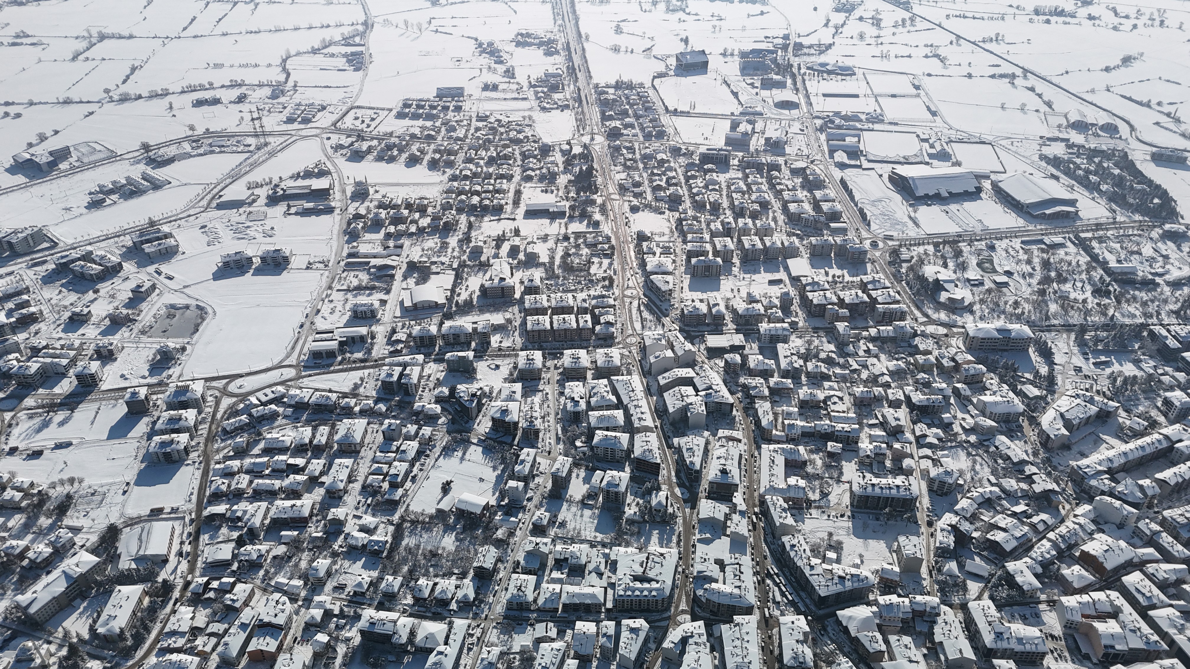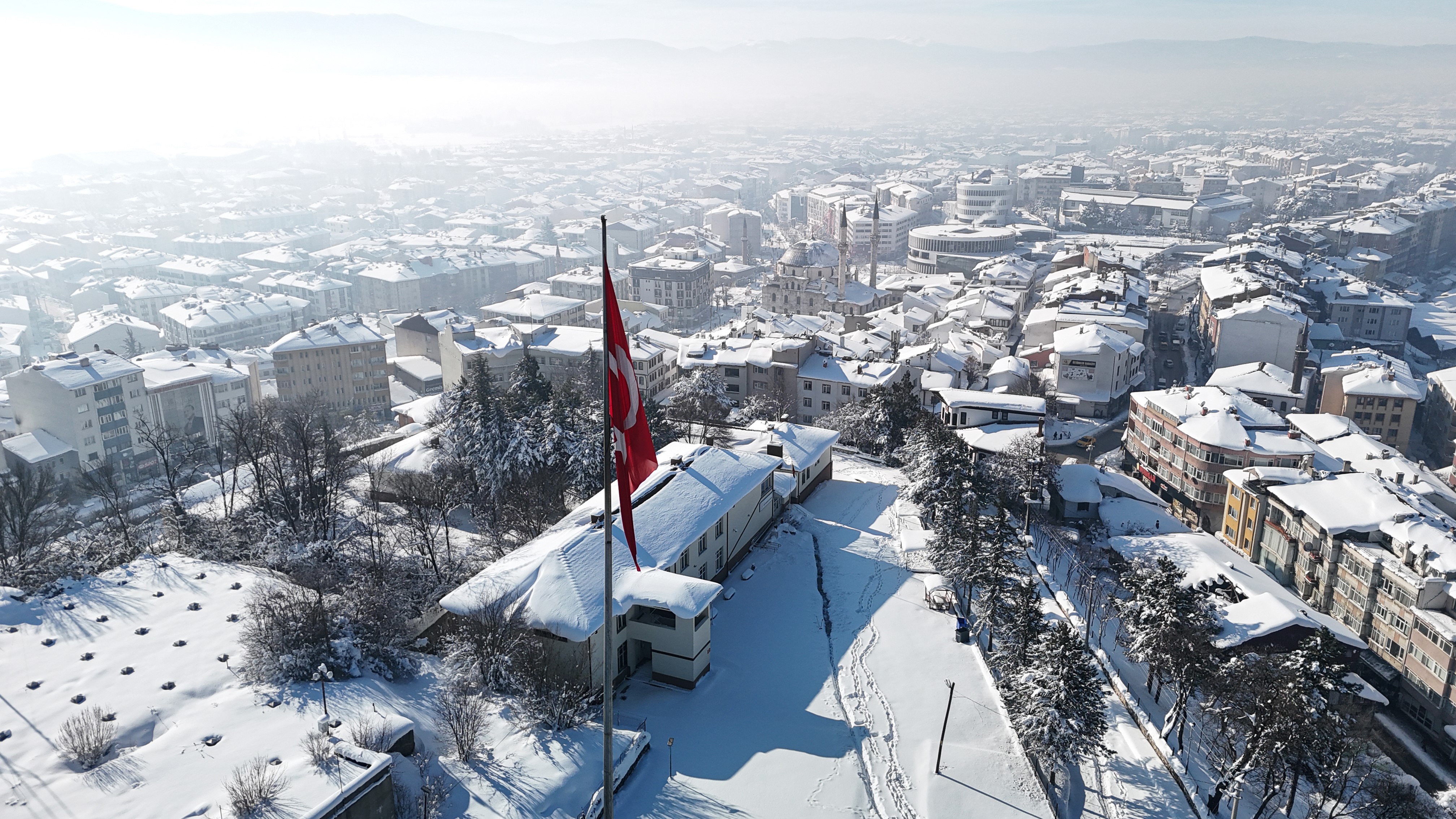 Bolu’da hafta sonu başlayan ve 3 gün boyunca etkisini sürdüren yoğun kar yağışı, şehri tamamen beyaza bürüdü. Kent merkezinde kar kalınlığı yarım metreyi geçerken, ulaşımda aksamalar yaşanmaması için belediye ekipleri ana arterlerde ve ara sokaklarda kar küreme çalışmalarını sürdürdü. Kar yağışının etkisini yitirmesinin ardından Bolu, güne güneşli bir havayla uyandı. Şehrin üzerini kaplayan beyaz örtü, dron ile görüntülendi. Beyaza bürünen şehir merkezi, kartpostallık görüntüler oluşturdu.