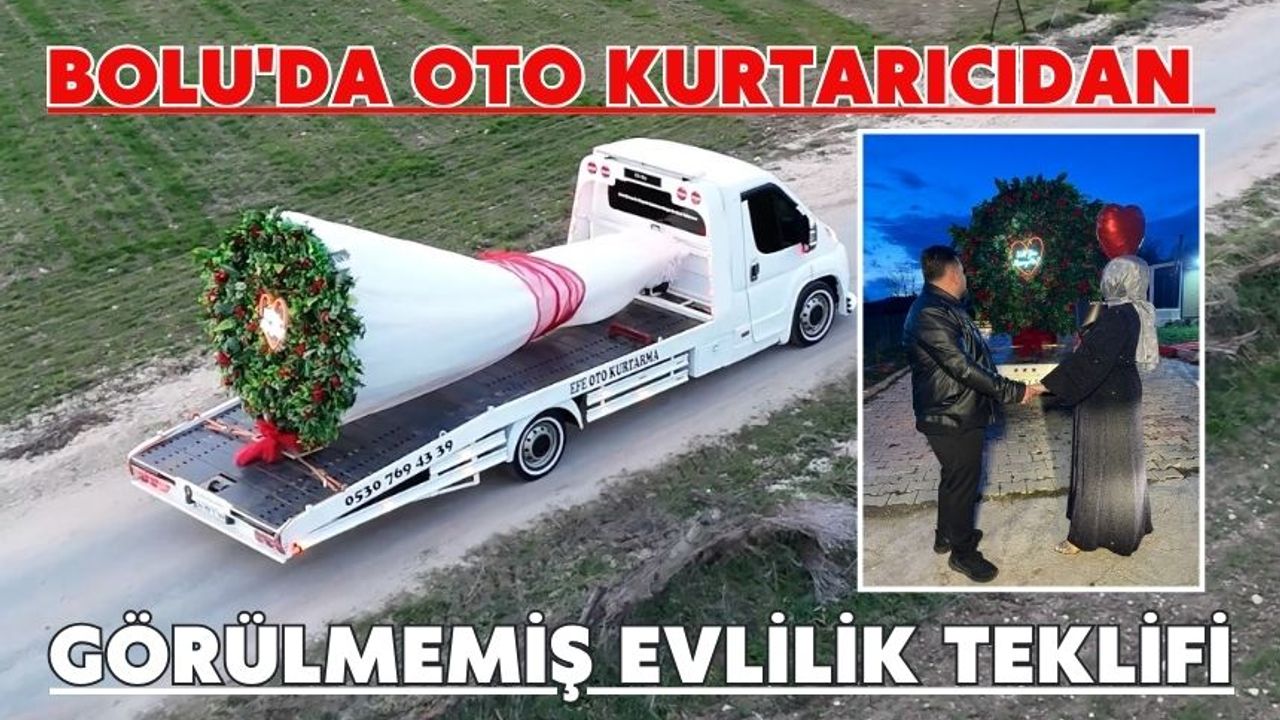 Bolu'nun Mudurnu ilçesinde oto kurtarıcı işiyle uğraşan Tolga Efe, bir süredir birlikte olduğu kız arkadaşı Emine Rana'ya unutulmaz bir evlilik teklifi yaptı. Mesleğini sürprizine yansıtan Efe, kendi kullandığı iş makinesinin üzerine büyük bir çiçek buketi yerleştirdi. Hazırlıklarını tamamladıktan sonra kız arkadaşının karşısına çıkan Tolga Efe, dev çiçek buketi eşliğinde Emine Rana'ya evlilik teklifinde bulundu. Sürpriz karşısında büyük mutluluk yaşayan Emine Rana, teklife "evet" cevabını verdi.