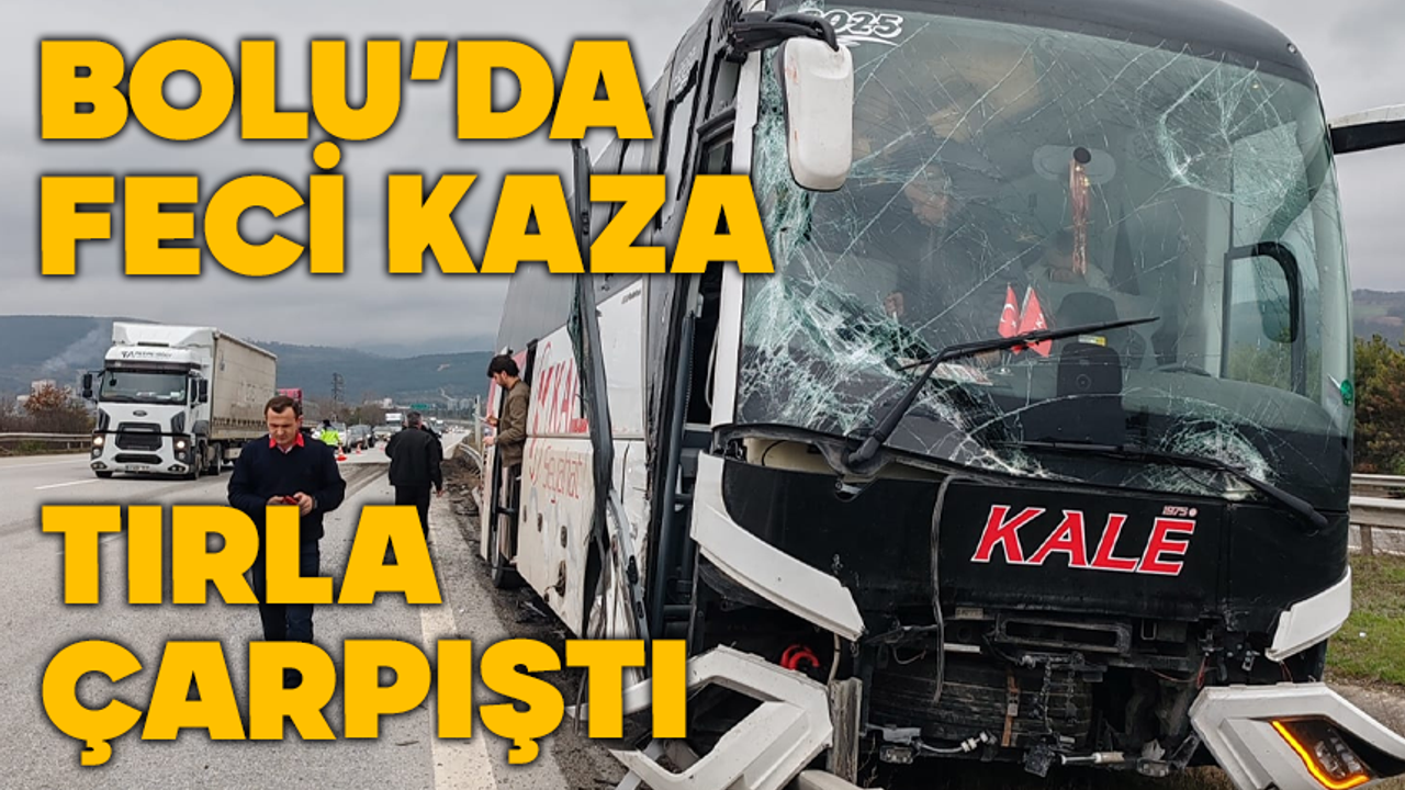 Bolu’da, Anadolu Otoyolu’nda TIR’la çarpışan yolcu otobüsü kontrolden çıkarak refüje çarptı. İhbar üzerine olay yerine 112 Sağlık ve jandarma ekipleri sevk edildi.
