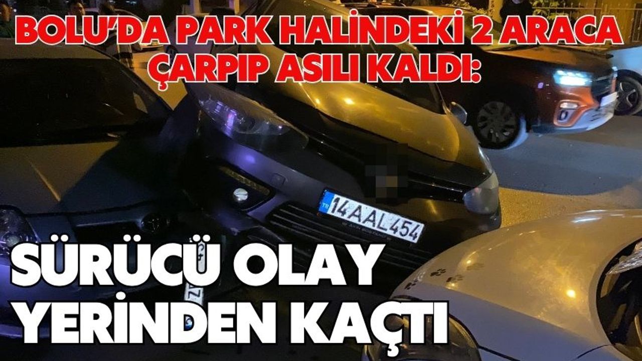 Bolu'da park halindeki 2 araca çarpıp asılı kaldı: Sürücü olay yerinden kaçtı