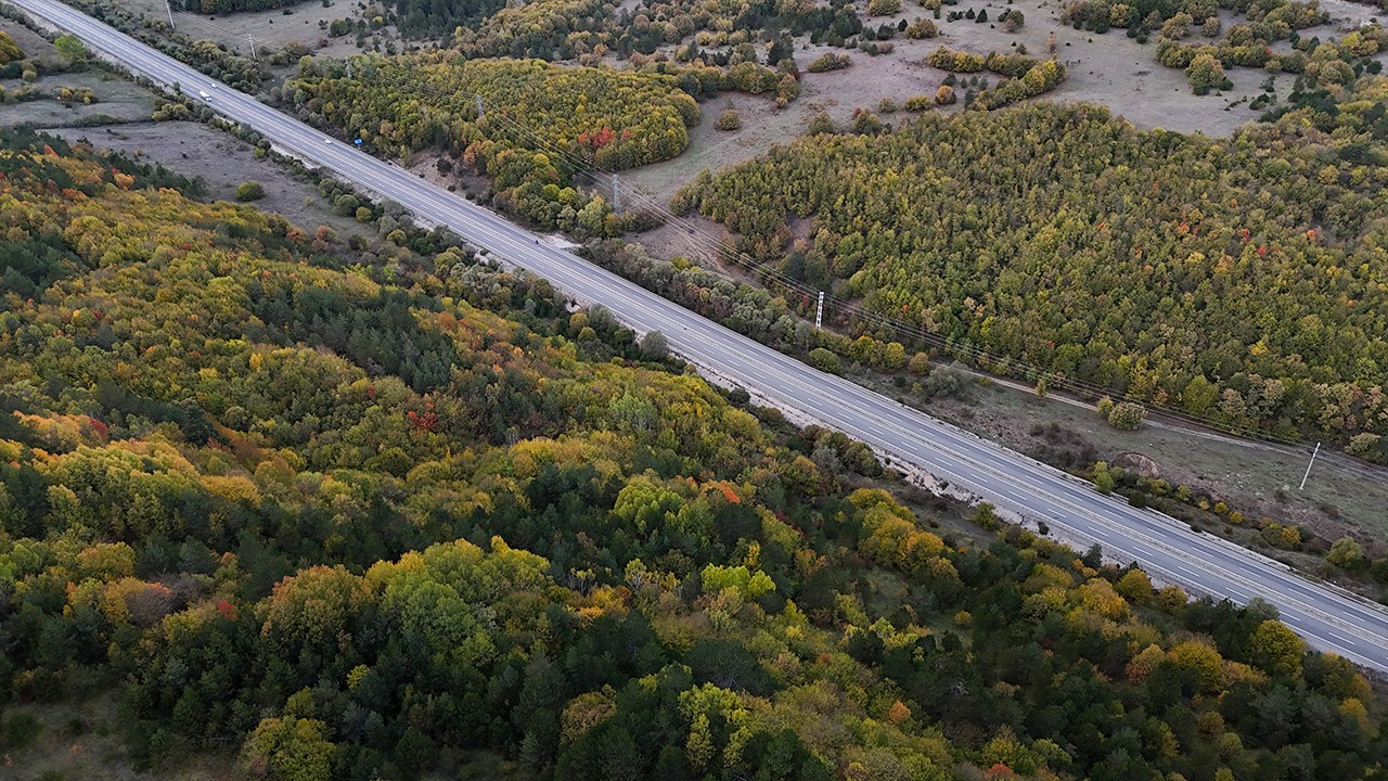 Türkiye'nin en önemli geçiş güzergahlarından biri olan Bolu Dağı'nda sonbaharın tüm renkleri bir arada görülüyor. D-100 kara yolunun Bolu Dağı mevkii ile Yeniçağa ilçesi geçişinde ağaçlar, sarı, turuncu ve kızıl tonlara bürünerek doğayı renklendirdi. D-100 kara yolundan geçen sürücüler, Bolu Dağı ve Yeniçağa geçişinde kartpostallık manzaralarla karşılaşıyor. Renk cümbüşüyle dikkat çeken ağaçlar, bölgeden geçen vatandaşlar tarafından cep telefonlarıyla görüntüleniyor. Sonbaharın en güzel tonlarını barındıran güzergah dronla görüntülendi.