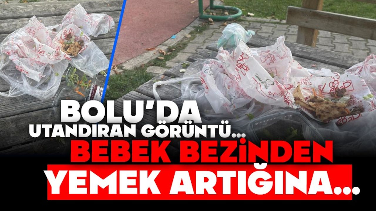 Bolu’da sanayinin karşısında bulunan bir park, kimliği belirsiz kişiler tarafından bırakılan çöpler nedeniyle adeta çöplüğe döndü. Parktaki ahşap masanın üzerinde yiyecek artıkları, plastik kaplar, poşetler ve ambalajlar bulunurken, en çok tepki çeken ise yere bırakılmış kirli bir bebek bezi oldu.