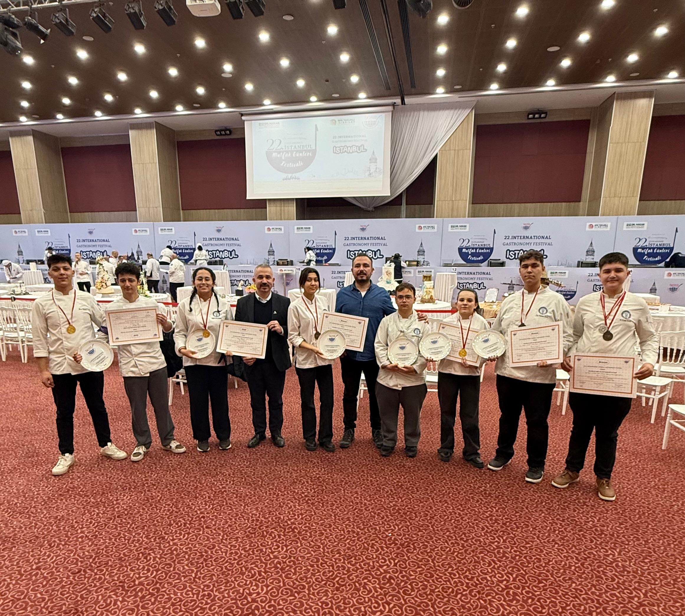 Bolulu genç aşçılar, yarışmadan 3 altın ve 3 bronz madalya ile döndü. Her grupta 4’er kişinin yer aldığı ekiplerin yarıştığı organizasyonda, her oturumda 20 grup mücadele etti. 20’den fazla oturumda, onlarca kategoride bin 500’ün üzerinde yarışmacı hünerlerini sergiledi.