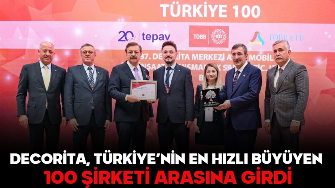 Bolu merkezli Decorita firması, Türkiye Odalar ve Borsalar Birliği (TOBB), TOBB Ekonomi ve Teknoloji Üniversitesi (TOBB ETÜ) ve Türkiye Ekonomi Politikaları Araştırma Vakfı (TEPAV) iş birliğinde düzenlenen Türkiye 100 Ödül Töreninde Türkiye’nin en hızlı büyüyen şirketleri arasına girdi. Cumhurbaşkanı Yardımcısı Cevdet Yılmaz’ın katılımıyla gerçekleştirilen törende, ülke ekonomisine yön veren genç ve yenilikçi şirketlerin başarıları ödüllendirildi.