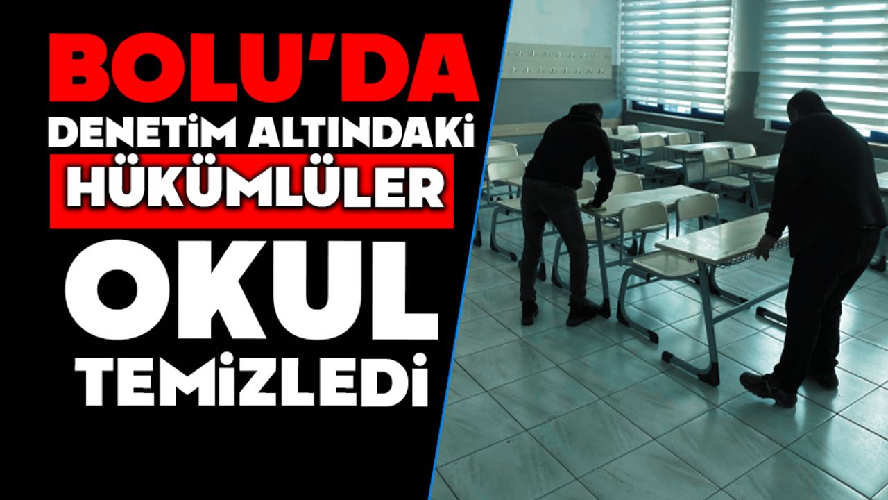 Bolu Sosyal Bilimler Lisesinde, kamu hizmeti cezası bulunan hükümlüler tarafından temizlik yapıldı. Denetim altındaki hükümlüler, sınıflardaki masaları bezlerle tek tek silerek, okul koridorlarını paspasladı. Okul temizliğine katkı sağlaya hükümlüler, aynı zamanda cezalarını da tamamlamış oldu.
