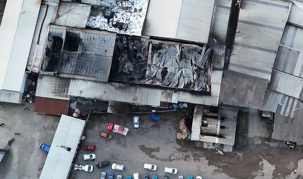 Havanın aydınlanmasıyla yangının fabrikada oluşturduğu tahribat da gün yüzüne çıktı. Dron ile havadan görüntülenen fabrikada, alevlerin özellikle depo kısmında etkili olduğu ve bu alanın tamamen kullanılamaz hale geldiği görüldü.