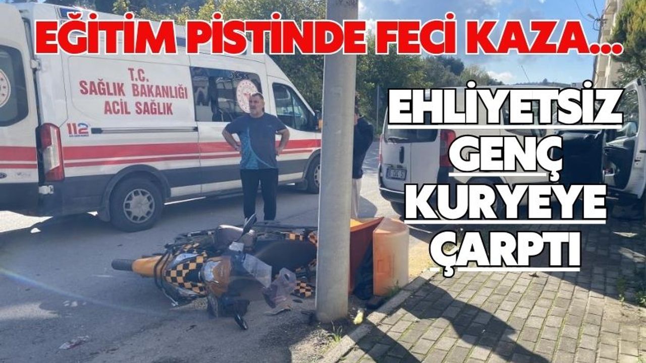 Eğitim pistinde feci kaza...Ehliyetsiz genç kuryeye çarptı