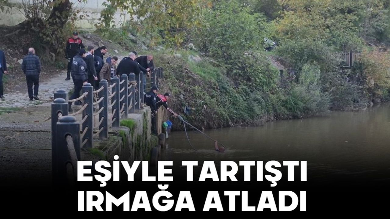 Eşiyle tartışan bir kişi ırmağa atladı. Polis tarafından ikna edilen şahıs, ağaç dalı, kıyafet ve halat yardımıyla sudan çıkarıldı.