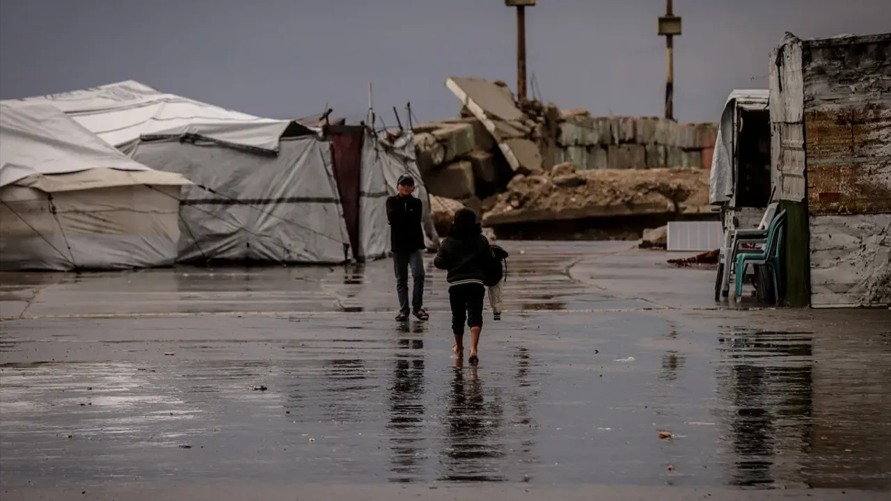 Yağmurun aniden bastırmasıyla binlerce Filistinli, açlık, hastalık ve bombardımanın yıkımıyla sürdürdükleri mücadelenin yanına bu kez de yağmur altında hayatta kalma savaşı eklemek zorunda kaldı.