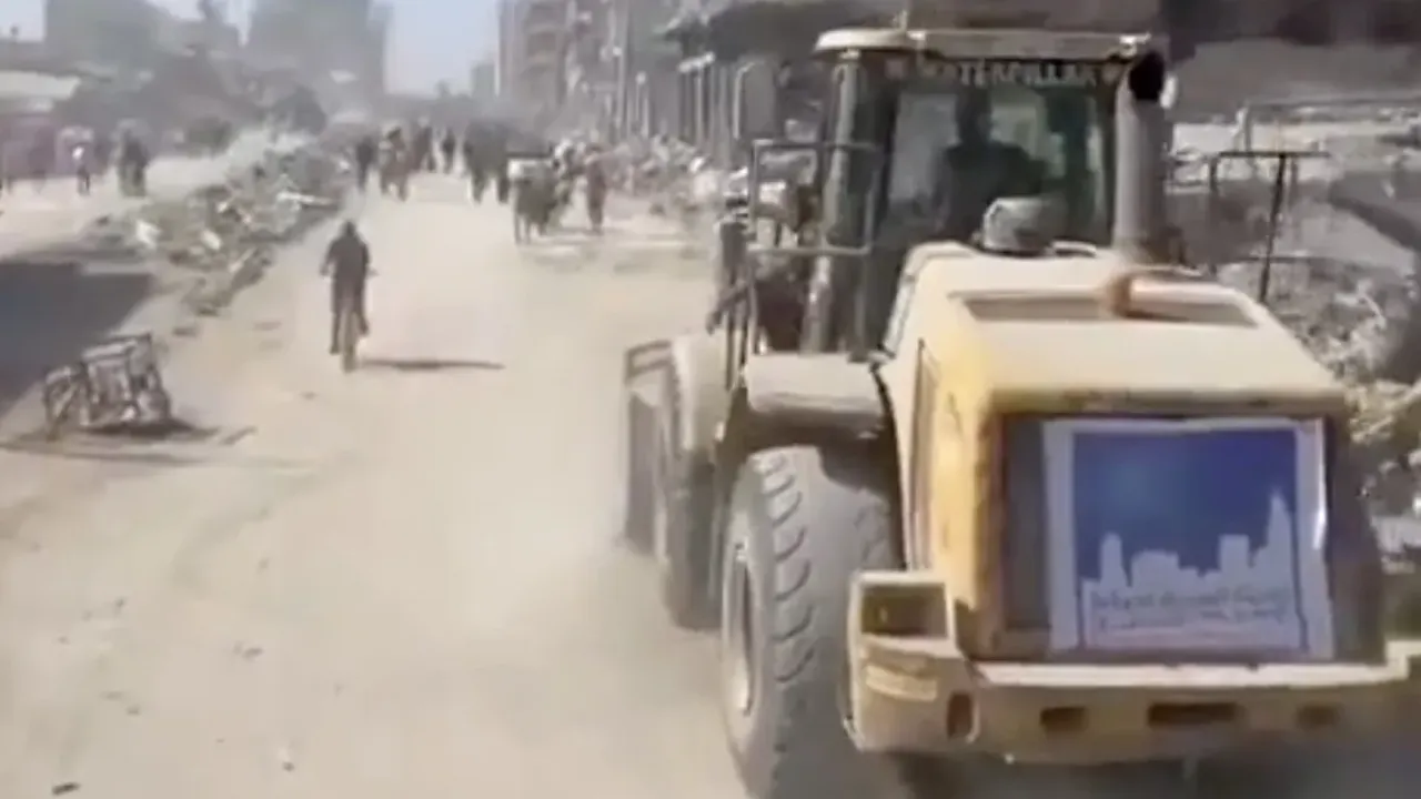 Gazze Belediyesi'ne ait araç ana caddeleri enkazdan temizlemek için harekete geçti.