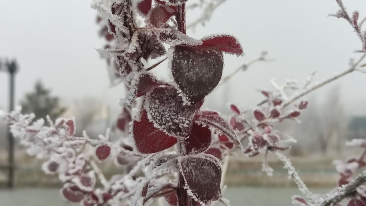 Ardahan'da hava sıcaklığının gece eksi 13 dereceye kadar düştüğü Göle ilçesinde bitki ve ağaçlar kırağı tuttu.