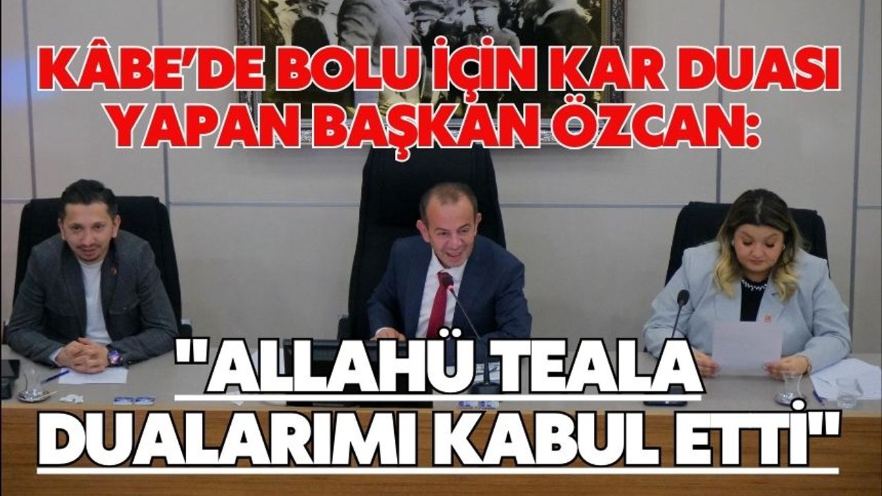 Bolu'da geçtiğimiz hafta boyunca etkili olan kar yağışı sebebiyle şehir merkezinde kar kalınlığı yer yer 65 santimetreyi, yüksek kesimlerde ise 1.5 metreyi geçti. Metrekareye 84.4 mm yağan kar sebebiyle Bolu'da hayat olumsuz etkilendi. Bolu Belediye Meclisi'nin Ocak ayı 1. Oturumu'nda konunun gündeme gelmesiyle Bolu Belediye Başkanı Tanju Özcan umre ziyaretinde Bolu için ‘Kar duası' ettiğini söyledi. Başkan Özcan, "Umrede kar duası ettim, ‘Allah'ım memleketime, Ya Rabb'im kar ver. Bolluk ver, bereket ver' dedim. Allahü Teala da taleplerimi, dualarımı kabul etmiş. Duayı abartmışız. Ama sen yıllardır az dua et, az dua et. Oraya gidince birden yüklen. Sonuçta 1,5 metre kar yağıyor işte" diye konuştu.