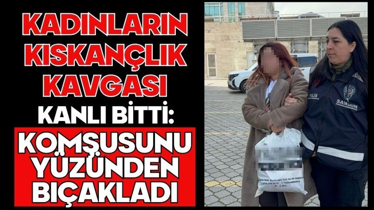 Olay, Samsun’un Atakum ilçesi Yeni Mahalle’de gece saat 01.00 sıralarında meydana geldi. İddiaya göre, aynı rezidansta altlı üstlü komşu olarak yaşayan E.E.(26) ile K.N.Y.(23) arasında, aynı kişiye aşık oldukları gerekçesiyle husumet oluştu. Şüpheli E.E., eski erkek arkadaşı U.C.İ.’nin (24) K.N.Y.’nin evinde olduğunu öğrenince elinde bıçak gece yarısı evin kapısına dayanıp zile bastı. E.E. ile kapıyı açan K.N.Y. arasında kıskançlık yüzünden çıkan tartışma kavgaya dönüştü. E.E. bıçakla K.N.Y.yi faça şeklinde yüzünden yaraladı.K.N.Y. de E.E.yi kolundan ısırdı. Yaralı E.E. hastaneye kaldırılarak tedavi altına alınırken, E.E., Atakum İlçe Emniyet Müdürlüğü Suç Önleme ve Soruşturma Büro Amirliği ekipleri tarafından yakalanarak gözaltına alındı. Polisteki işlemleri tamamlanan E.E., bugün Samsun Adliyesine sevk edildi.