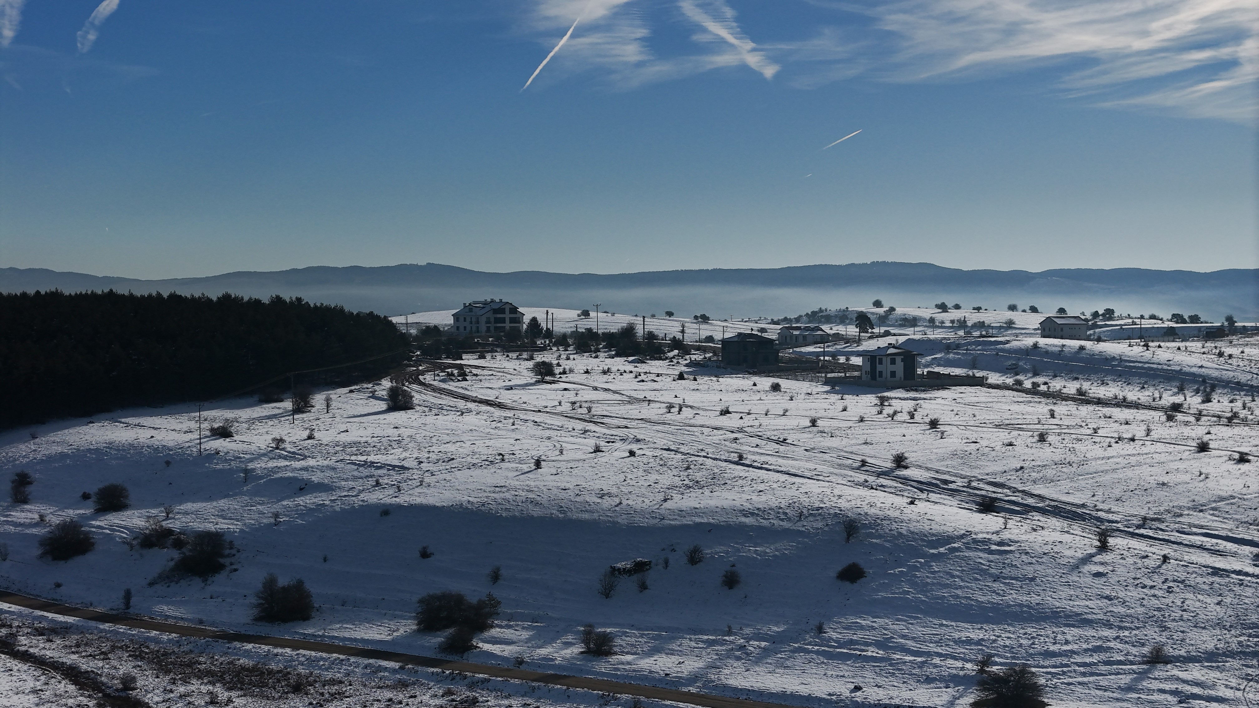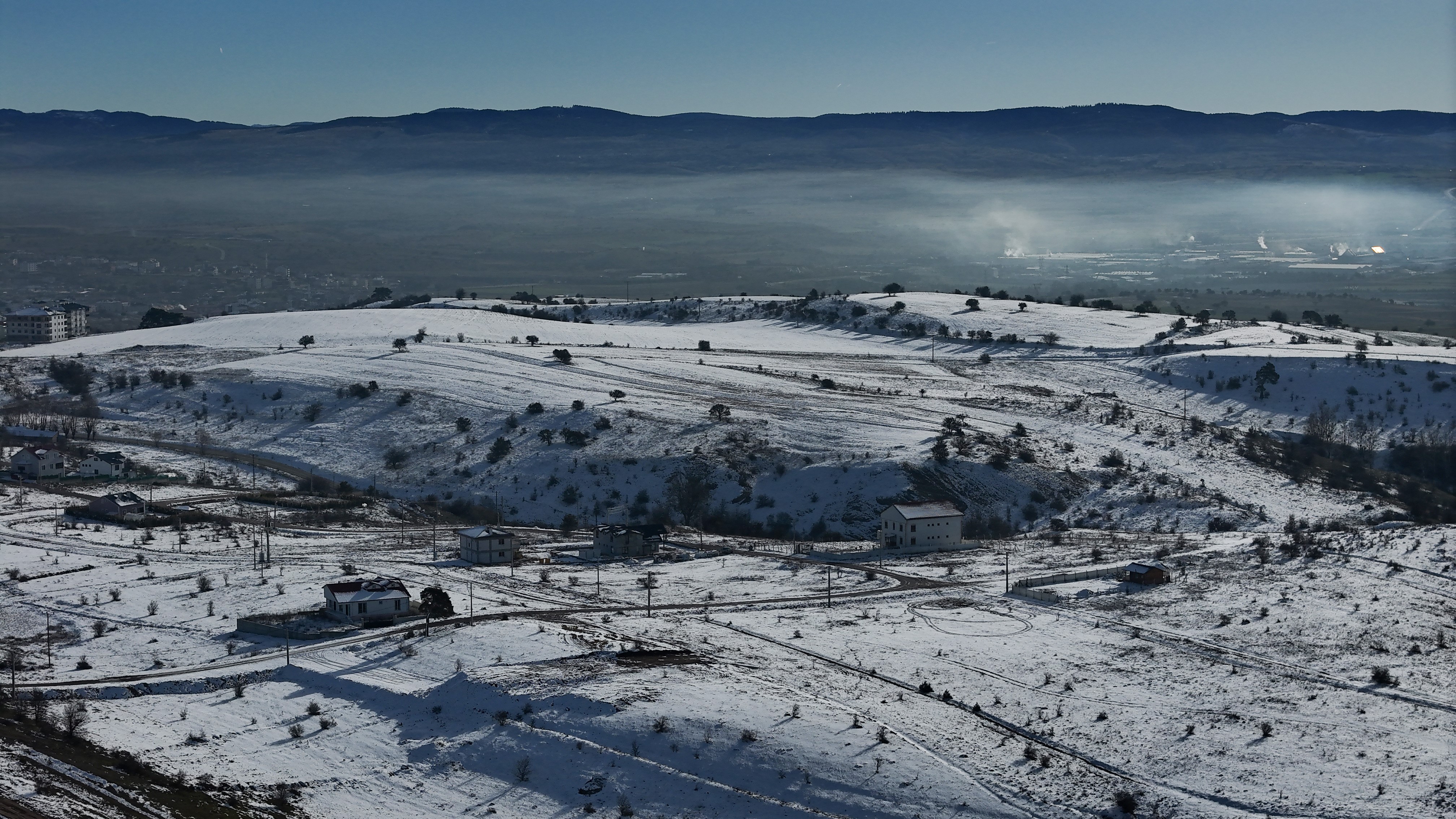 İlçede geçtiğimiz gün etkili olan yağış sonrası kent merkezi ve doğal alanlar beyaz örtüyle kaplandı. Sabah saatlerinde hava sıcaklığının sıfırın altına düştüğü ilçede, karla kaplı araziler ve güneşli hava, seyirlik görüntüler oluşturdu. Beyaza bürünen ilçe havadan dronla görüntülenirken, kış güneşinin aydınlattığı kar örtüsü kartpostallık kareler sundu.