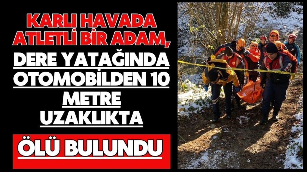 Karlı havada atletli bir adam, dere yatağında otomobilden 10 metre uzaklıkta ölü bulundu