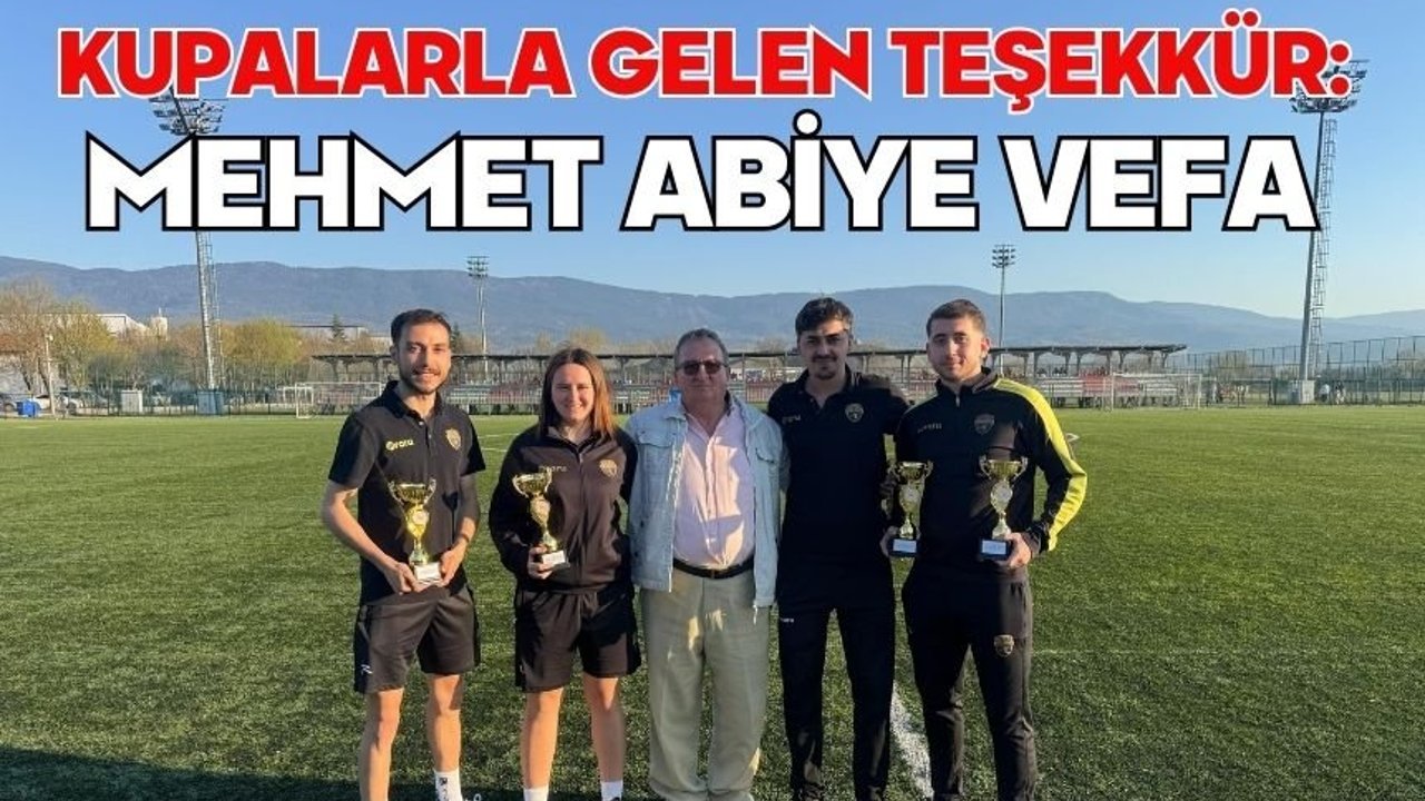 Soysalspor Futbol Akademisi’nin genç antrenörleri Beyza Kolludemiroğlu, İsmail Atundaş, Ömer Azman ve Uğur Kaan Bilgi, 23 Nisan Minikler Şampiyonası’nın ardından kazandıkları kupalarla birlikte Mehmet Karaüzüm ile hatıra fotoğrafı çektirdi. Genç antrenörler, Karaüzüm’e gösterdiği ilgi ve destekten dolayı teşekkür etti.