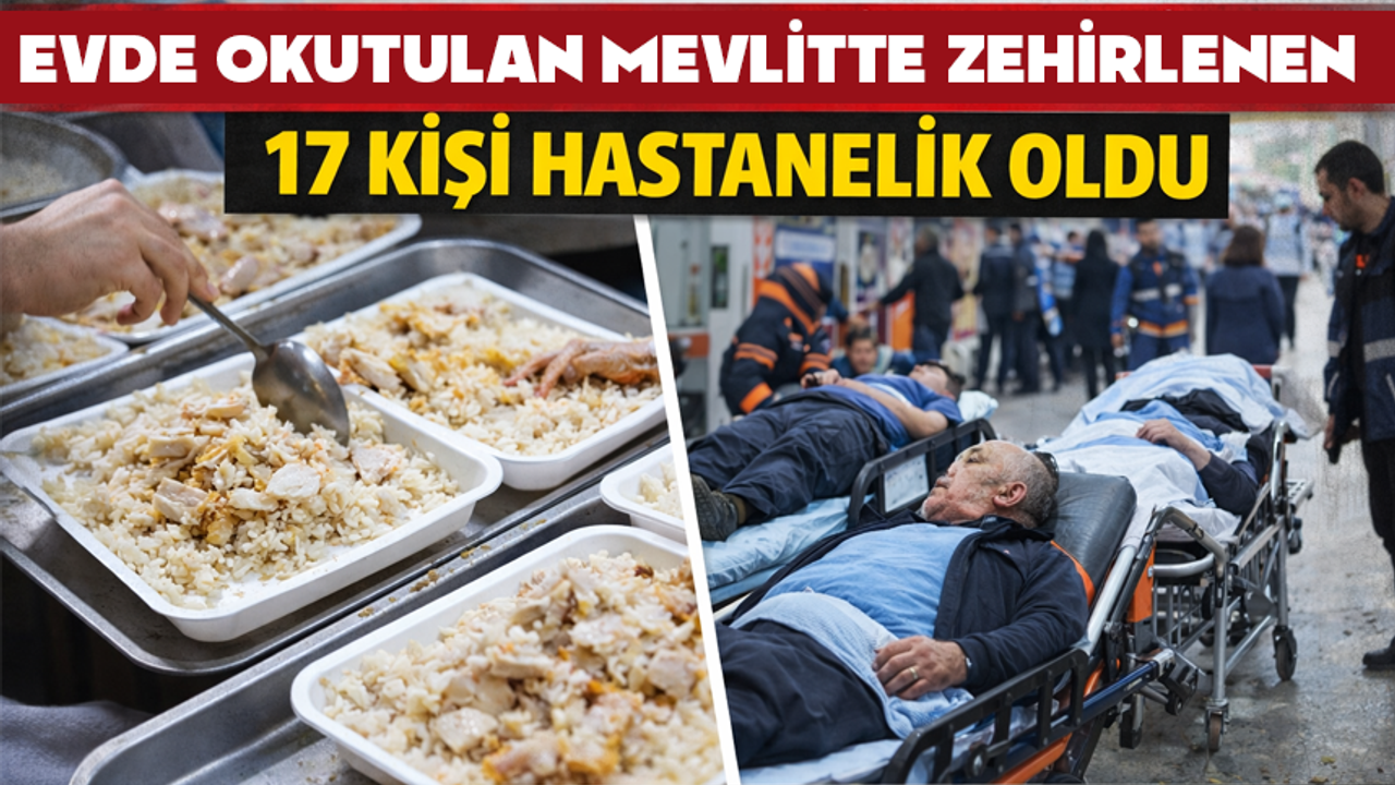 Evde okutulan mevlitte ikram edilen tavuklu pilavdan zehirlenen 17 kişi zehirlendi.