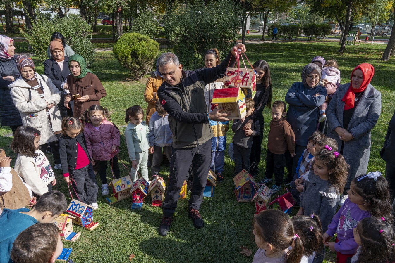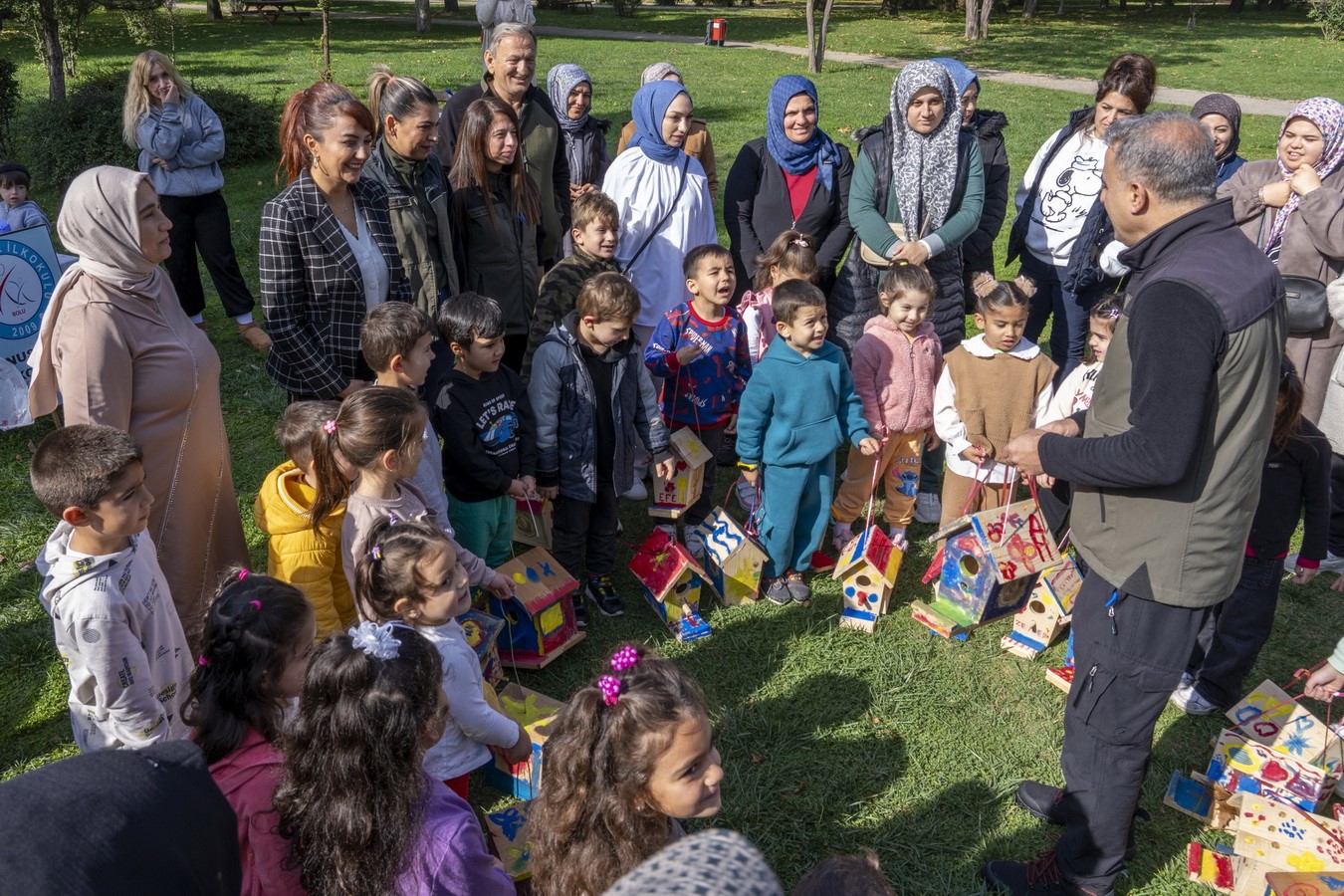 Bolu’da anaokulu öğrencileri, doğa sevgisini pekiştirmek ve çevre bilincini geliştirmek amacıyla boyadıkları kuş yuvalarını ağaçlara astı.