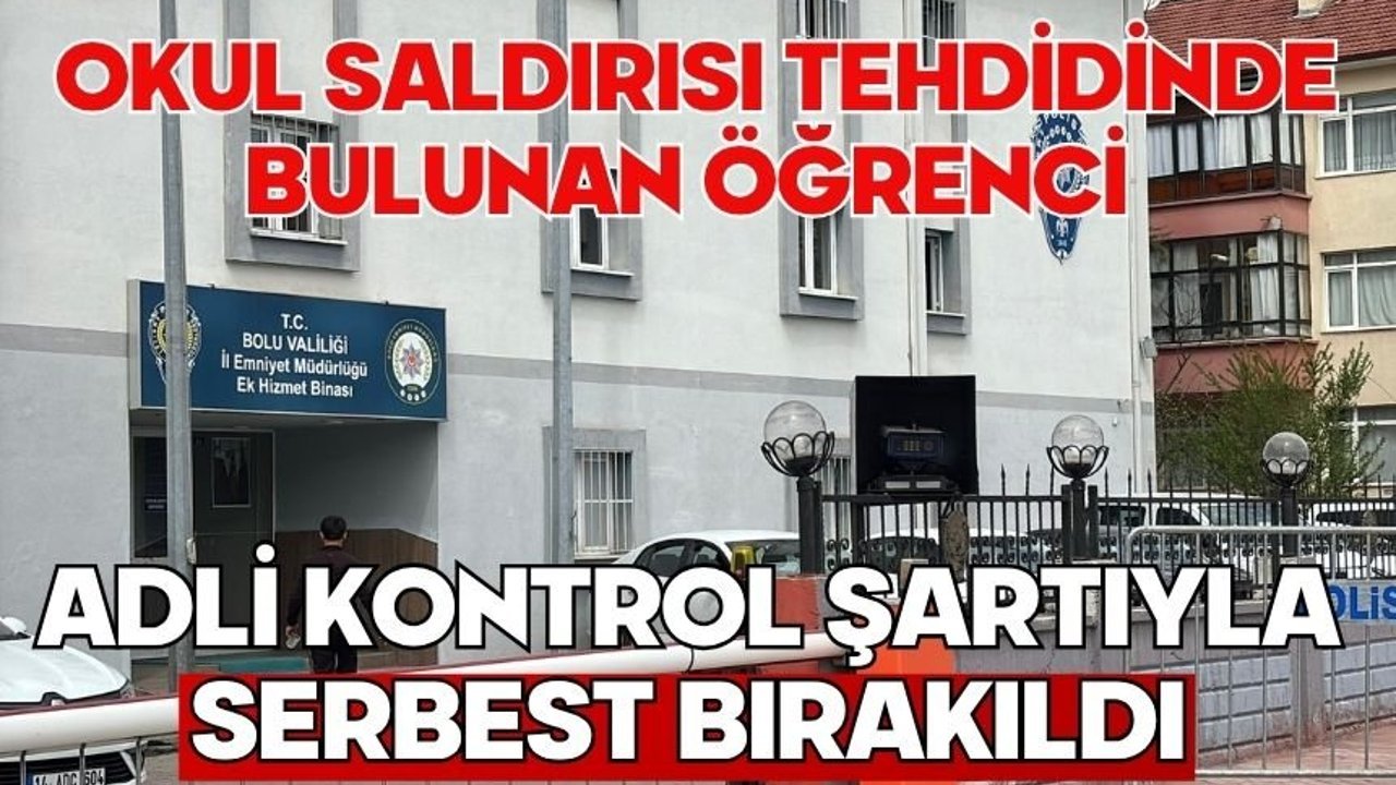 Bolu’da "okul saldırısı" düzenleyeceği yönünde tehdit içerikli ses kayıtları paylaşan 13 yaşındaki ortaokul öğrencisi, adli kontrol şartıyla serbest bırakıldı.