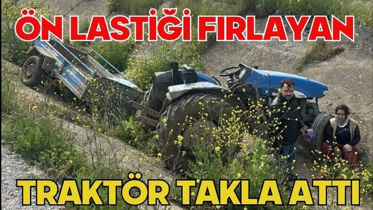 Edinilen bilgilere göre kaza, Manisa'nın Turgutlu ilçeye bağlı Sarıbey Mahallesi maden yolu mevkiinde meydana geldi. A.K. (41) yönetimindeki traktörün ön sol lastiği aniden fırladı. Direksiyon hakimiyetini kaybeden sürücünün kontrolünden çıkan traktör, savrularak devrildi. Kazada sürücü A.K. ile yanındaki H.G. (37) hafif yaralandı.