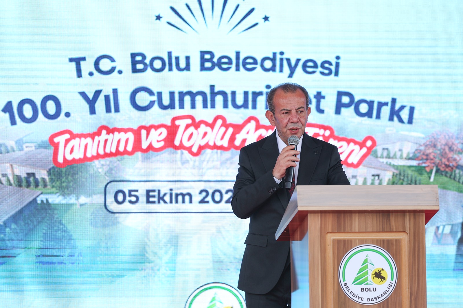 Bolu Belediyesi tarafından yapımına başlanılan 100. Yıl Cumhuriyet Parkı’nın tanıtımı ile Mezarlık İşleri Hizmet Binası ve Taziye Evi’nin açılış töreni, CHP Genel Başkanı Özgür Özel’in katılımıyla gerçekleştirildi. Törende, Bolu Belediye Başkanı Tanju Özcan’dan övgüyle bahseden CHP lideri Özel, “Tanju Özcan diyor ki: Dolar enflasyonunu düşsek bile yüzde 107 büyüdük. Nasıl büyüdü biliyor musunuz? Dürüst yönetti, çalmadı. Çünkü önceden o kadar çok çalıyorlardı ki, çalmayınca yüzde 107 büyüdü belediye” ifadelerini kullandı.