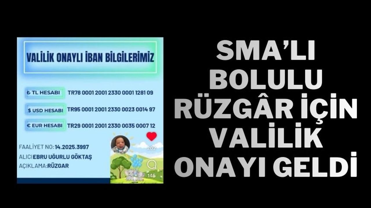 SMA Tip-2 teşhisi konulan Rüzgâr bebek için yürütülen kampanya sürecinde valilik izni çıktı. Aile, bağışların artık resmi olarak kabul edilebildiğini duyurarak valilik onaylı hesap numaralarını kamuoyuyla paylaştı.