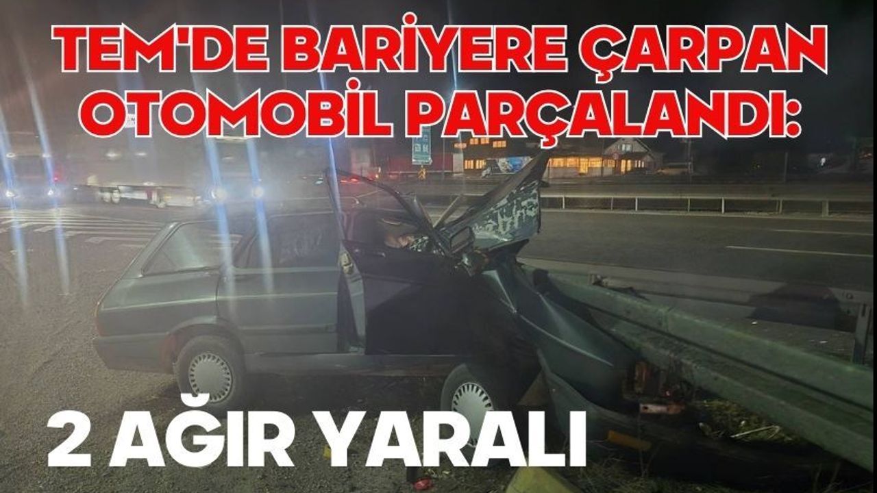 TEM'de bariyere çarpan otomobil parçalandı: 2 ağır yaralı