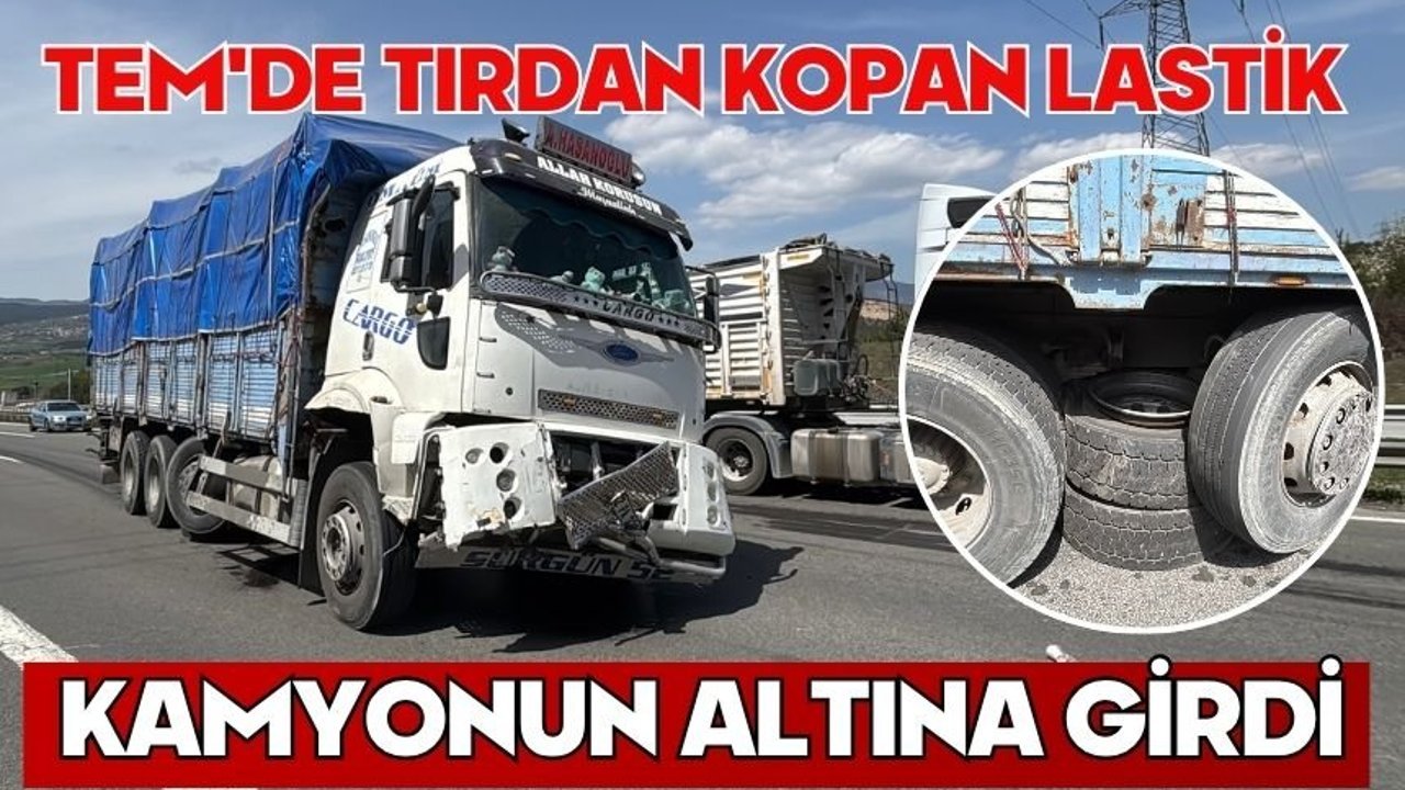 TEM'de tırdan kopan lastik kamyonun altına girdi