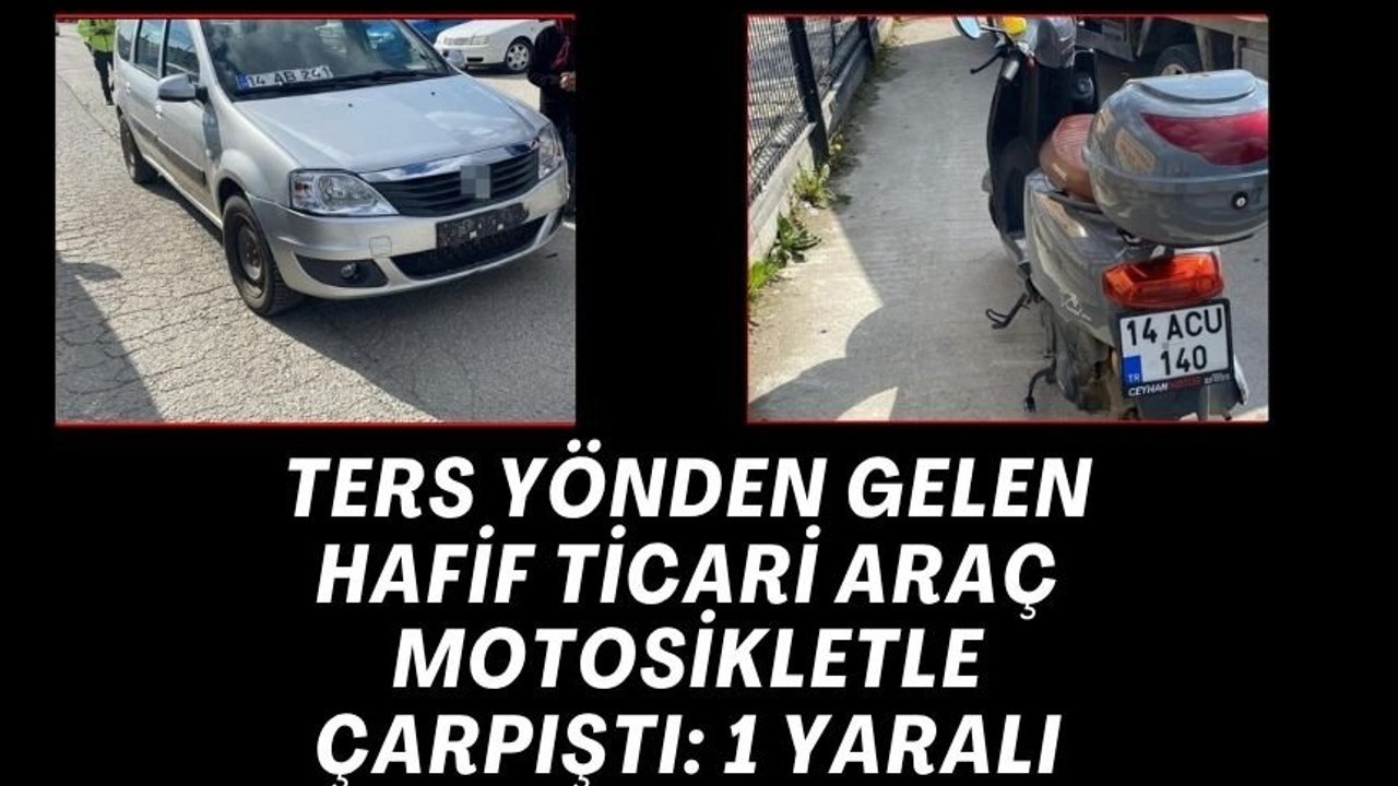 Kaza, D-100 karayolu İzzet Baysal Küçük Sanayi Sitesi mevkiinde meydana geldi. Edinilen bilgiye göre, 14 ACU 140 plakalı motosikletiyle Sert sokak üzerinden seyreden C.A. (26), o sırada D-100 karayolu Caddesi üzerinde ilerleyen ve ters yönden gelen A.B. idaresindeki 14 AB 241 plakalı hafif ticari araçla çarpıştı. Çarpışmanın etkisiyle motosiklet sürücüsü kadın yola savrularak yaralandı. Çevredeki vatandaşların 112 Acil Çağrı Merkezi’ne durumu bildirmesi üzerine olay yerine sağlık ve polis ekipleri sevk edildi. Kazada yaralanan kadın sürücü sağlık ekipleri tarafından yapılan ilk müdahalenin ardından Köroğlu Devlet Hastanesine kaldırılırken, durumunun iyi olduğu öğrenildi.