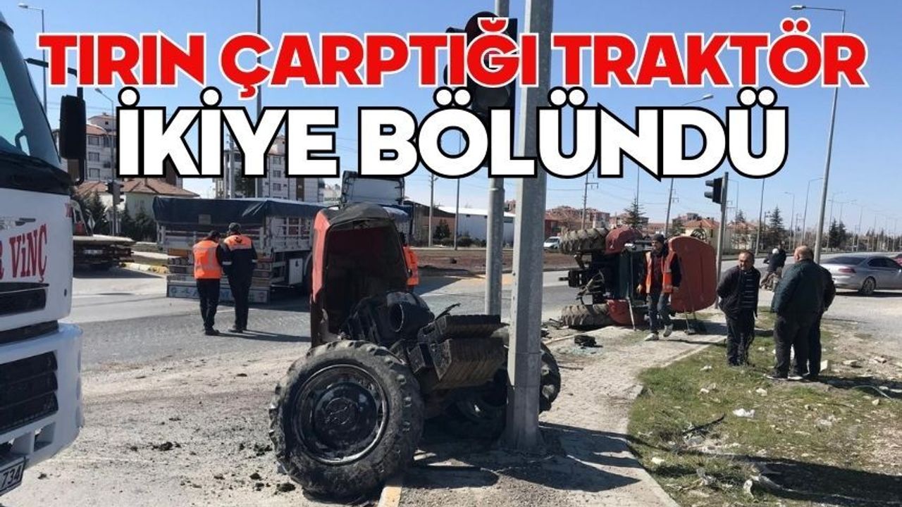 Tırın çarptığı traktör ikiye bölündü
