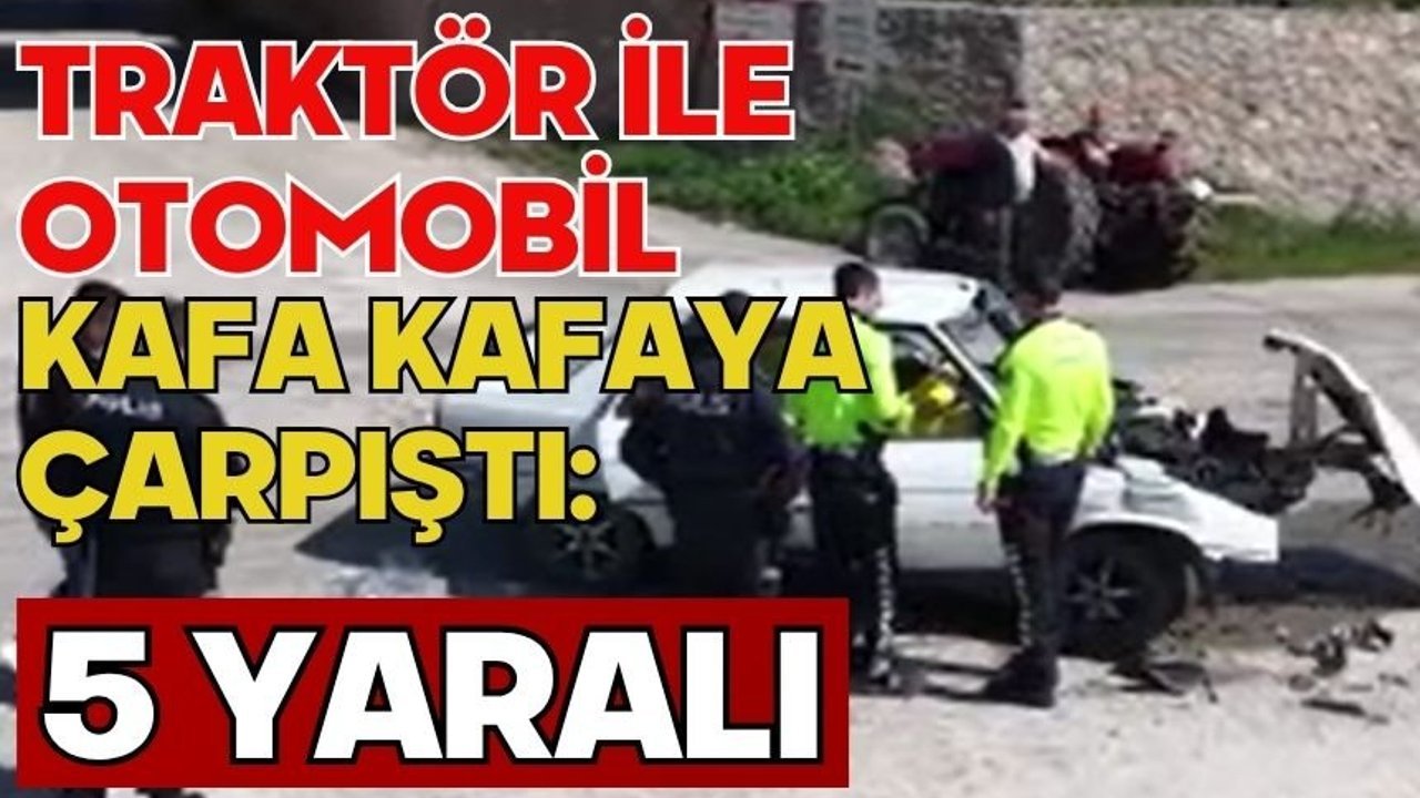Traktör ile otomobilin kafa kafaya çarpıştığı kazada 5 kişi yaralandı.